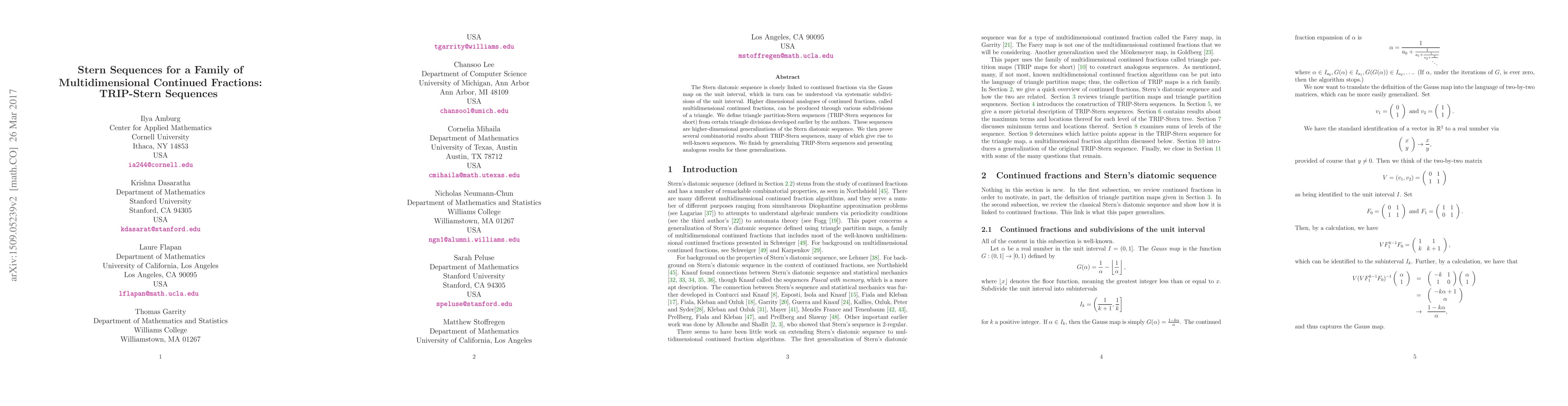 This paper introduces TRIP-Stern sequences, higher-dimensional analogues of the Stern diatomic sequence, derived from subdividing triangles. It explores combinatorial properties and generalizes these sequences, revealing connections to well-known sequences.
