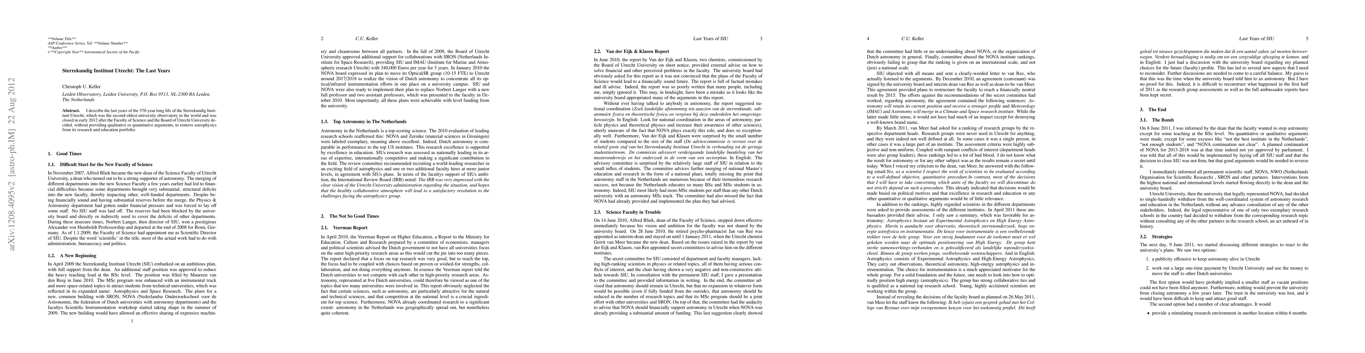 The paper recounts the final years of the Sterrekundig Instituut Utrecht, the second-oldest university observatory, which closed in 2012 following a decision by Utrecht University to remove astrophysics from its offerings, without presenting any supporting arguments. The closure marks the end of a 370-year legacy.