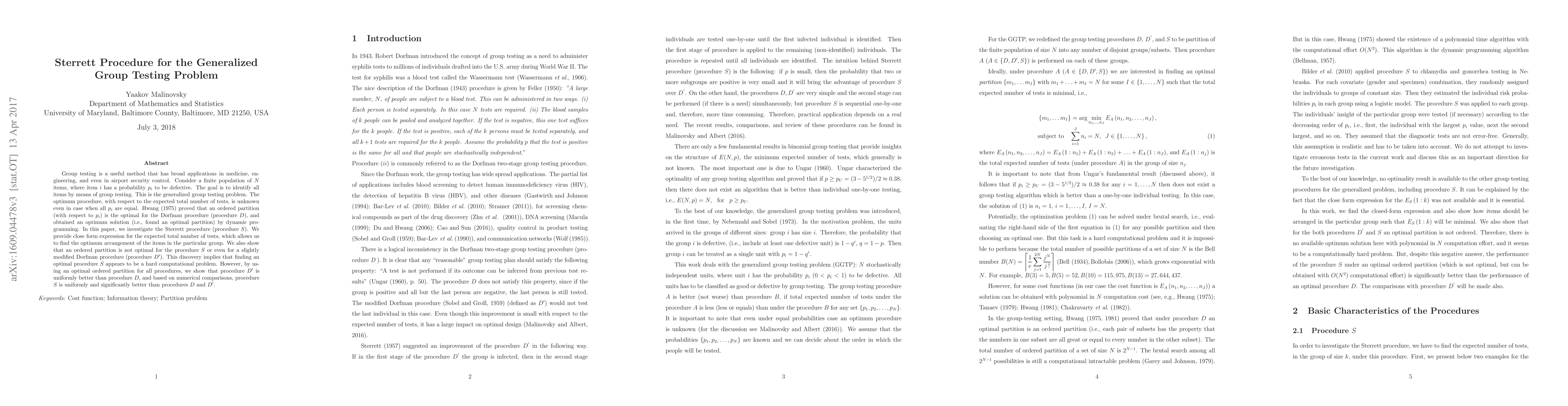 Researchers investigate the Sterrett procedure for solving the generalized group testing problem, finding it is uniformly better than two previously studied procedures in terms of expected total number of tests.