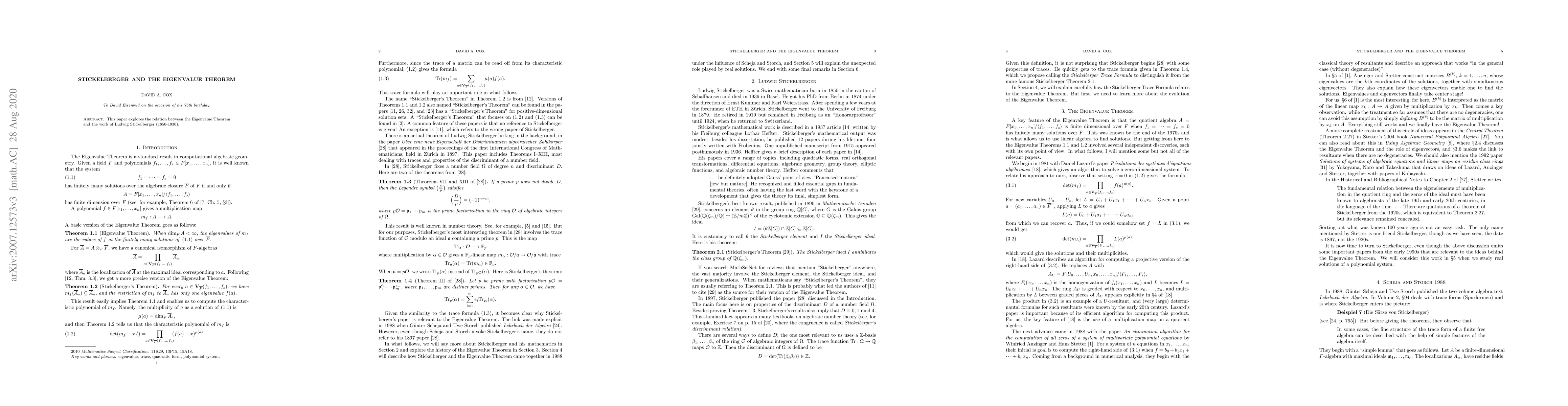 This paper links the Eigenvalue Theorem, which transforms zero-dimensional polynomial system solutions into eigenvalue problems, to the historical work of Ludwig Stickelberger, highlighting his potential influence on this modern mathematical concept.