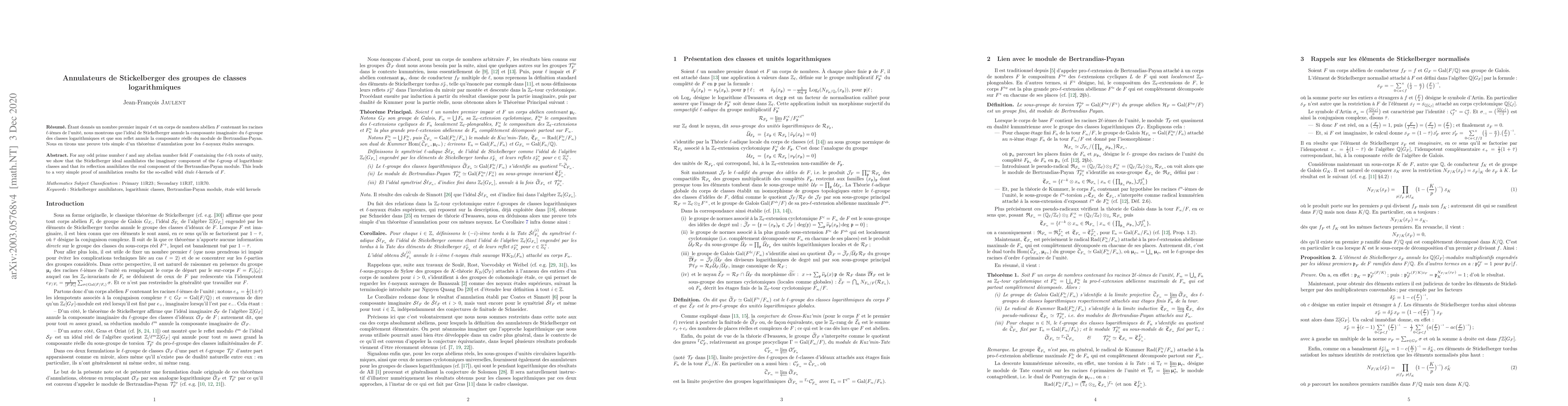 The study finds that a specific ideal in number theory annihilates key components of logarithmic classes in abelian number fields, leading to simple proofs for certain kernel properties.