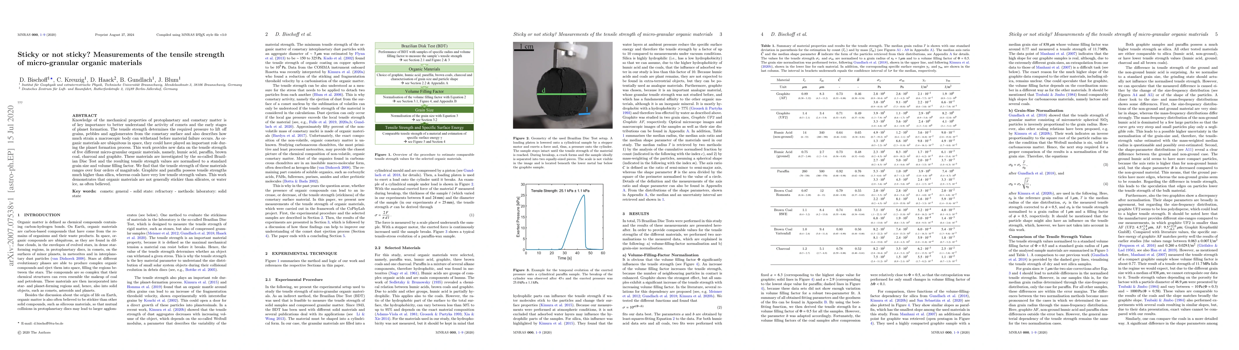 This paper investigates the tensile strength of five micro-granular organic materials—humic acid, paraffin, brown coal, charcoal, and graphite—using the Brazilian Disc Test. The findings reveal that these materials' tensile strengths span four orders of magnitude, challenging the common belief that organic materials are stickier than silicates or water ice.