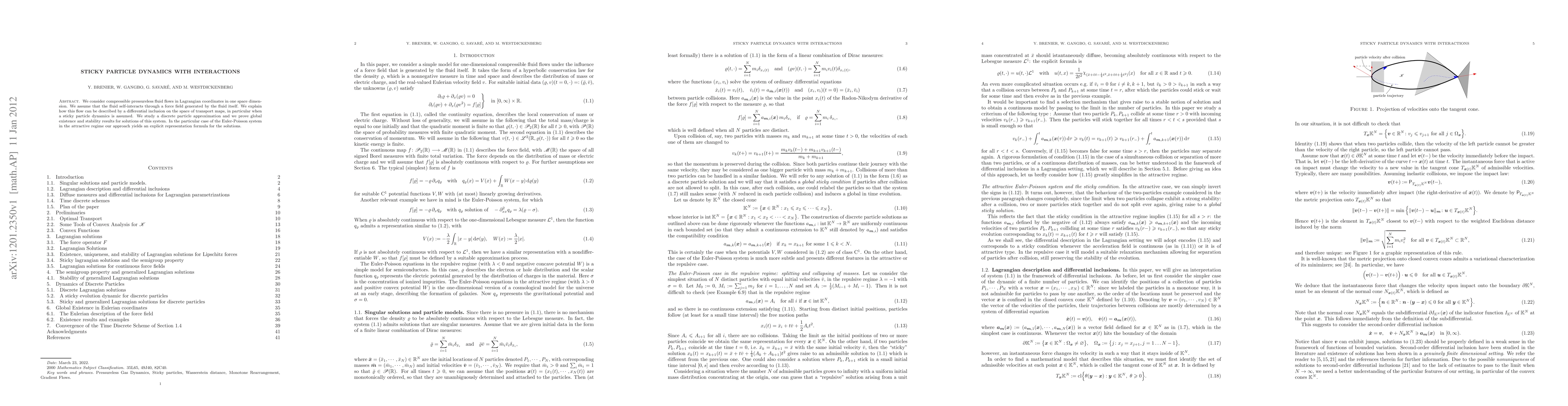 We consider compressible pressureless fluid flows in Lagrangian coordinates in one space dimension. We assume that the fluid self-interacts through a force field generated by the fluid itself. We explain how this flow can be described by a differential inclusion on the space of transport maps, in particular when a sticky particle dynamics is assumed. We study a discrete particle approximation and we prove global existence and stability results for solutions of this system. In the particular case of the Euler-Poisson system in the attractive regime our approach yields an explicit representation formula for the solutions.