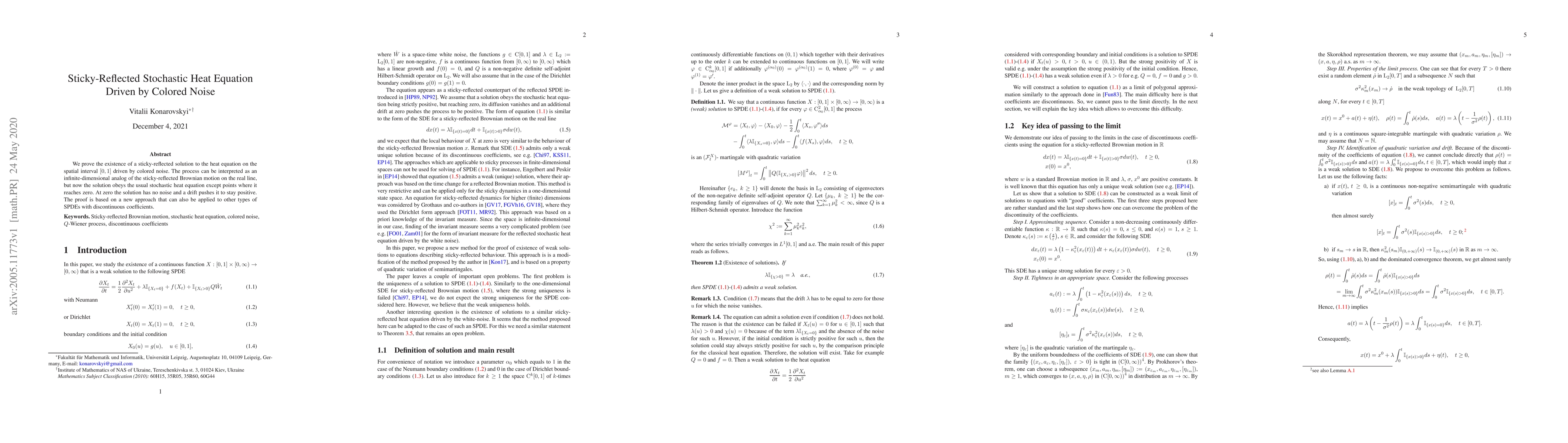 The paper introduces a new proof technique for SPDEs with discontinuous coefficients, specifically applicable to the sticky-reflected stochastic heat equation.