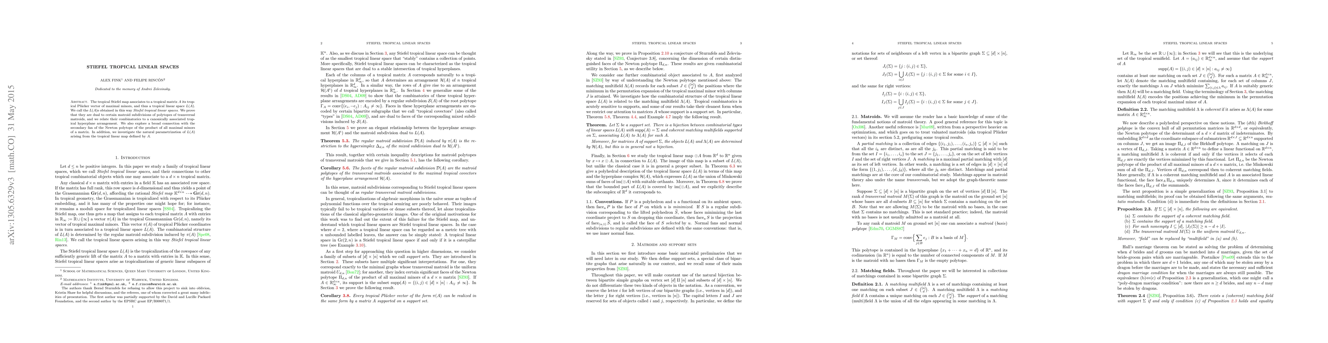 The paper explores tropical Stiefel linear spaces, defined via tropical Plücker vectors of maximal minors, and proves their duality to matroid subdivisions of polytopes. It also connects their combinatorics to a canonical tropical hyperplane arrangement and the secondary fan of the Newton polytope of maximal minors' product.