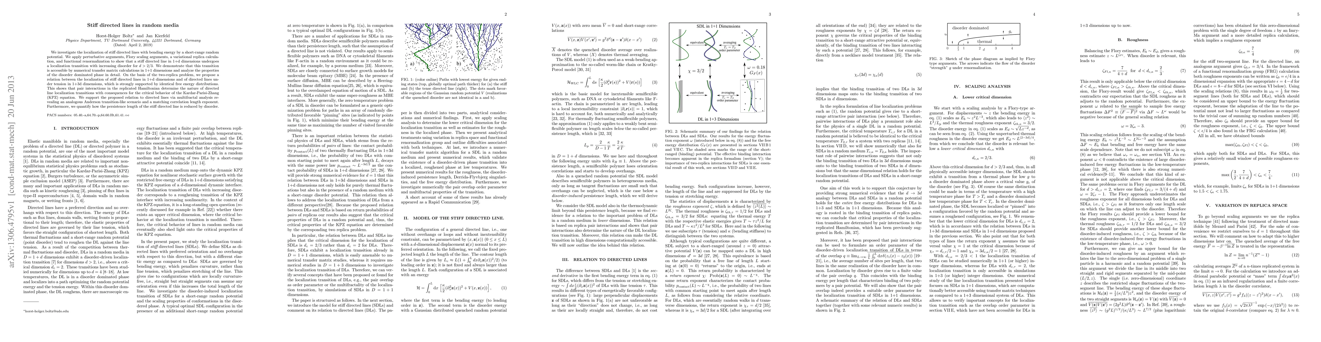 Research shows that stiff directed lines in random media undergo a localization transition with increasing disorder, with implications for the critical behavior of the Kardar-Parisi-Zhang equation.