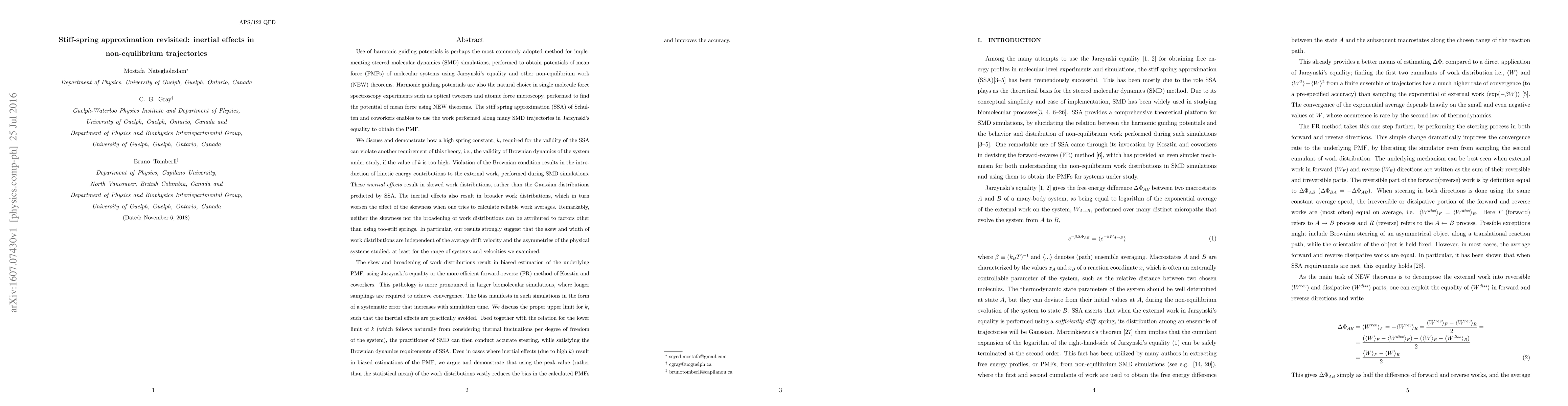 Researchers found that using stiff spring approximations in simulations can introduce skewed work distributions due to inertial effects, leading to biased estimations of potentials of mean force. They suggest a proper upper limit for spring constant k and recommend using peak values instead of statistical means to improve accuracy.