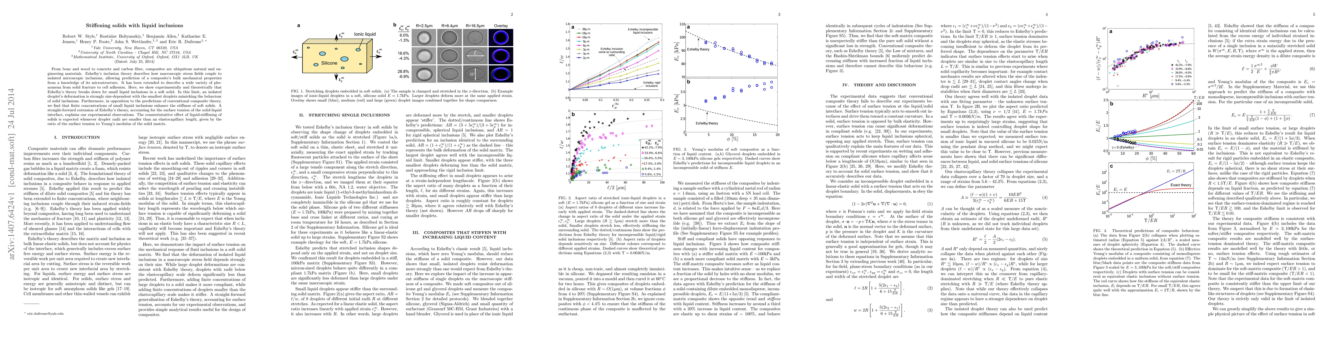 This study reveals that conventional composite theory fails to predict the mechanical behavior of soft solids with small liquid inclusions, showing that such inclusions can actually increase the stiffness of the solid matrix, contrary to expectations. A modified Eshelby's theory, incorporating surface tension effects, accurately explains this counterintuitive "liquid-stiffening" phenomenon.