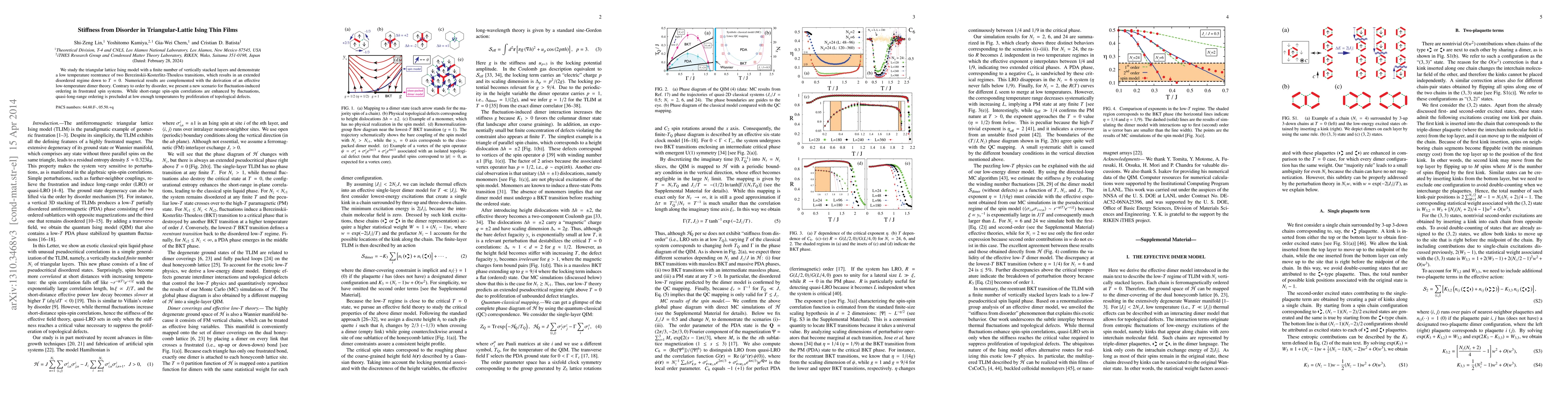We study the triangular lattice Ising model with a finite number of vertically stacked layers and demonstrate a low temperature reentrance of two Berezinskii-Kosterlitz-Thouless transitions, which results in an extended disordered regime down to $T=0$. Numerical results are complemented with the derivation of an effective low-temperature dimer theory. Contrary to order by disorder, we present a new scenario for fluctuation-induced ordering in frustrated spin systems. While short-range spin-spin correlations are enhanced by fluctuations, quasi-long-range ordering is precluded at low enough temperatures by proliferation of topological defects.