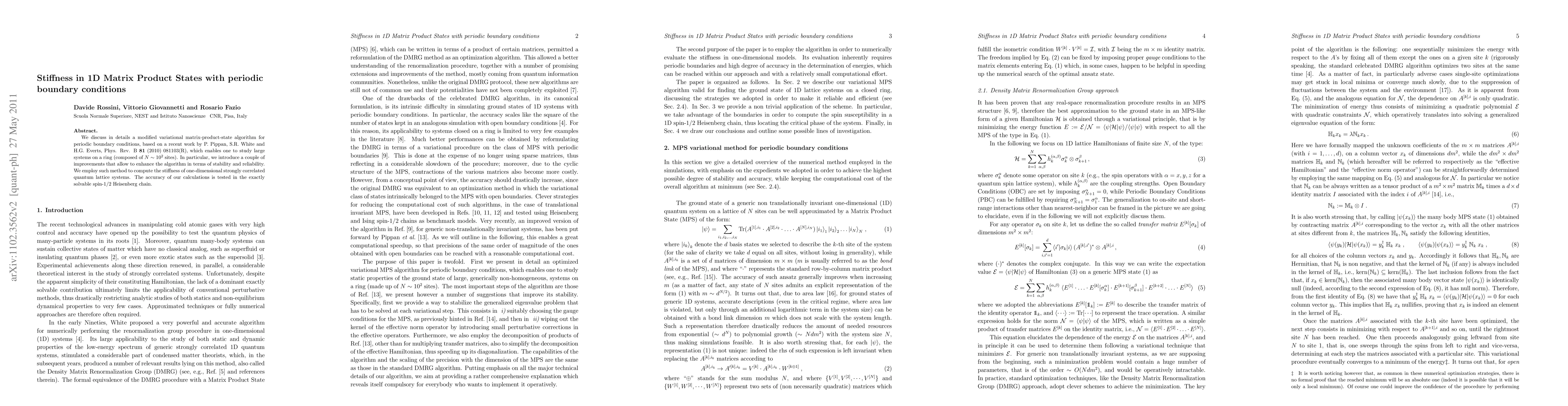 This paper presents a refined variational matrix-product-state algorithm for studying large ring-shaped quantum systems under periodic boundary conditions, enhancing stability and reliability. The method is applied to compute the stiffness of one-dimensional strongly correlated quantum lattice systems, validated through calculations on the spin-1/2 Heisenberg chain.