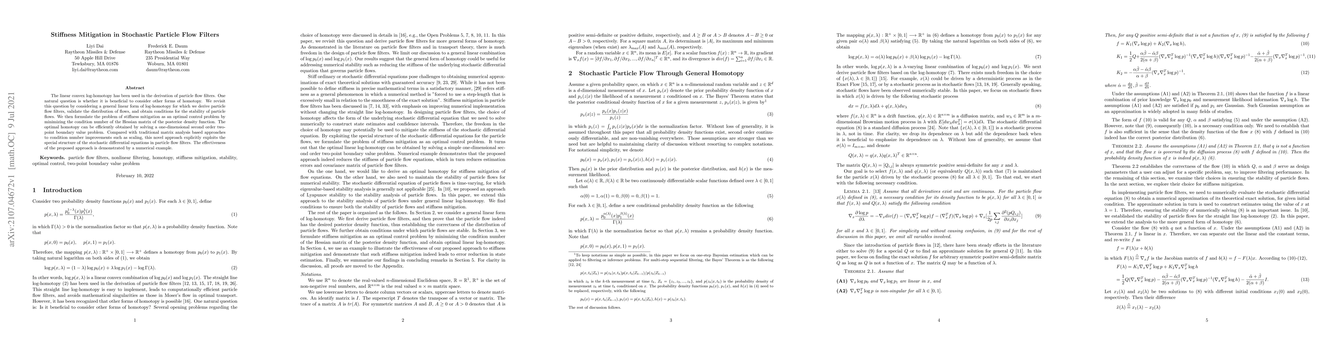 The linear convex log-homotopy has been used in the derivation of particle flow filters. One natural question is whether it is beneficial to consider other forms of homotopy. We revisit this question by considering a general linear form of log-homotopy for which we derive particle flow filters, validate the distribution of flows, and obtain conditions for the stability of particle flows. We then formulate the problem of stiffness mitigation as an optimal control problem by minimizing the condition number of the Hessian matrix of the posterior density function. The optimal homotopy can be efficiently obtained by solving a one-dimensional second order two-point boundary value problem. Compared with traditional matrix analysis based approaches to condition number improvements such as scaling, this novel approach explicitly exploits the special structure of the stochastic differential equations in particle flow filters. The effectiveness of the proposed approach is demonstrated by a numerical example.