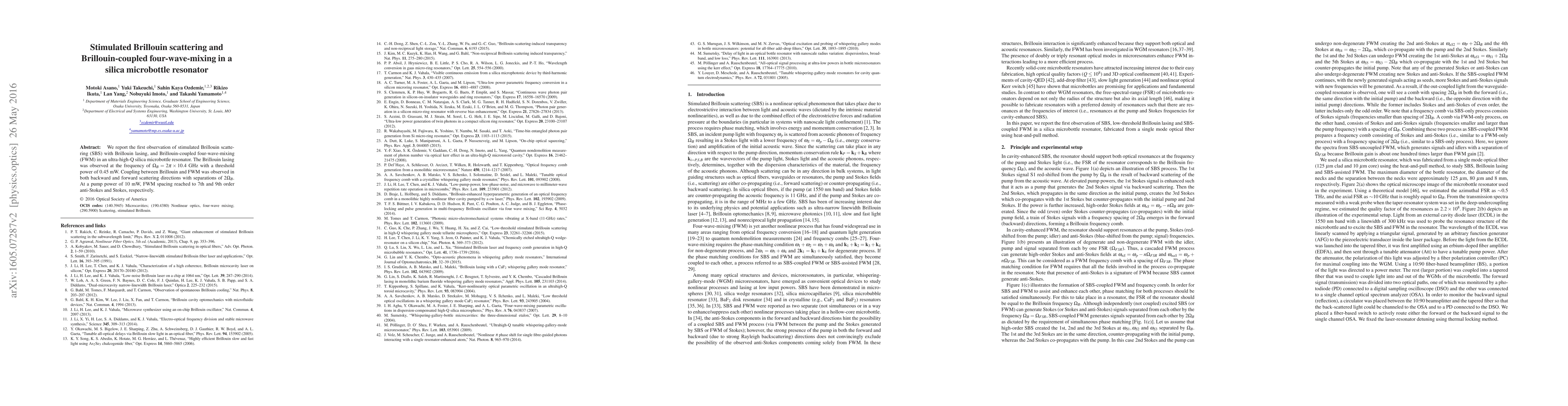 This study observes stimulated Brillouin scattering with Brillouin lasing and Brillouin-coupled four-wave-mixing in a silica microbottle resonator, achieving Brillouin lasing at 10.4 GHz and FWM up to the 7th and 9th order at 10 mW pump power.