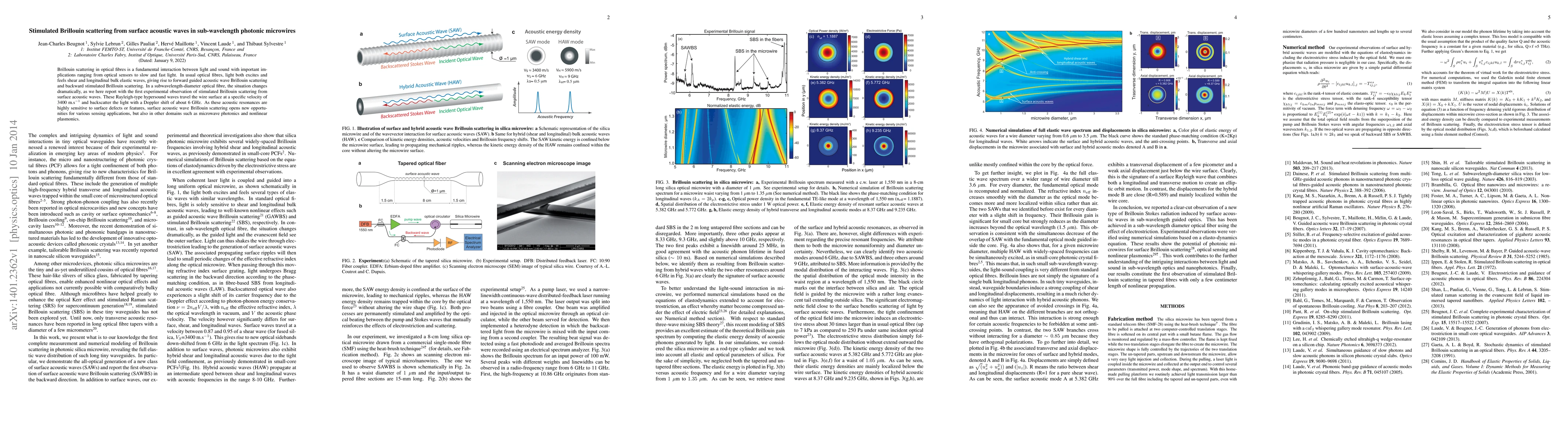 This research reports the first experimental observation of stimulated Brillouin scattering from surface acoustic waves in sub-wavelength photonic microwires, revealing Rayleigh-type hypersound waves traveling at 3400 m/s and a Doppler shift of 6 GHz. This phenomenon holds potential for advanced sensing and applications in microwave photonics and nonlinear plasmonics.