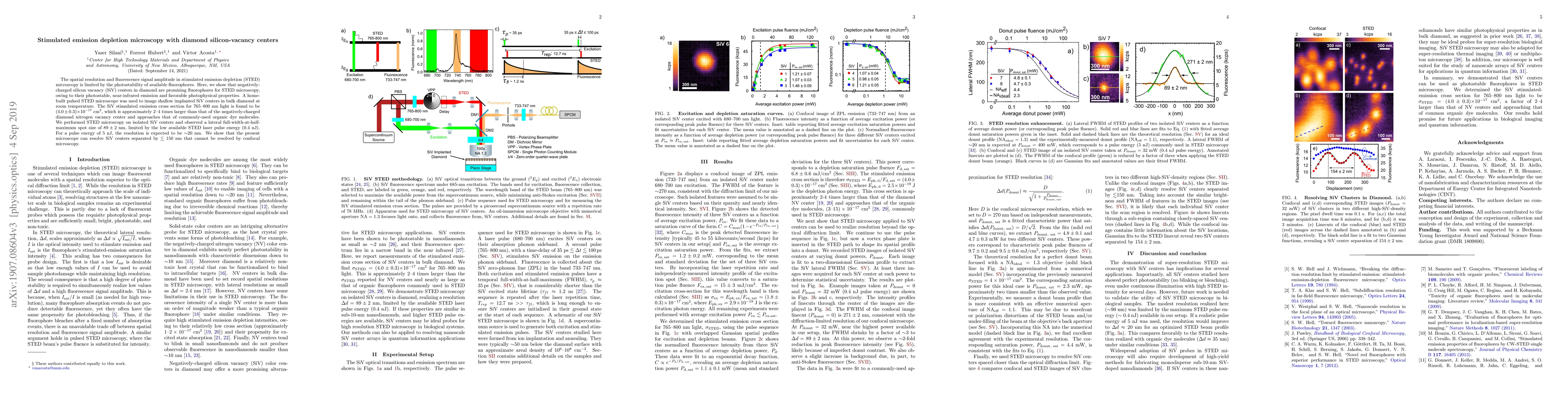 Silicon vacancy (SiV) centers in diamond offer a photostable alternative to organic dyes in stimulated emission depletion (STED) microscopy due to their favorable photophysical properties and near-infrared emission. Achieved resolution of 89 nm demonstrates the potential of SiV centers to surpass the capabilities of confocal microscopy.