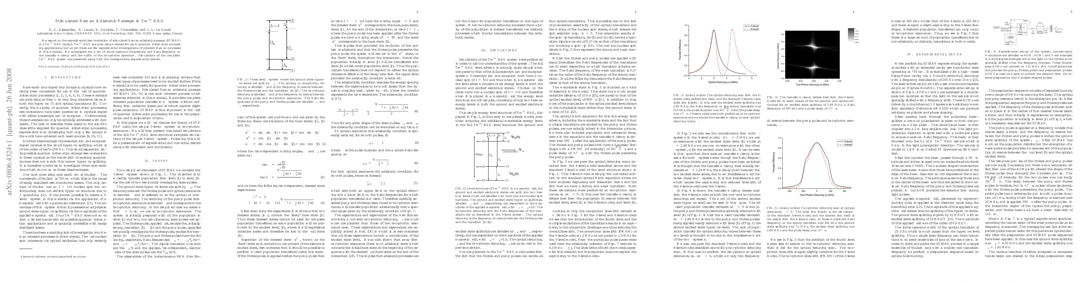 This paper demonstrates stimulated Raman adiabatic passage (STIRAP) in Tm$^{3+}$:YAG crystals, exploring the effects of inhomogeneous broadening and Rabi frequency on transfer efficiency and two-photon spectrum width. Experimental results are corroborated by simulations of the complete Tm$^{3+}$:YAG system.