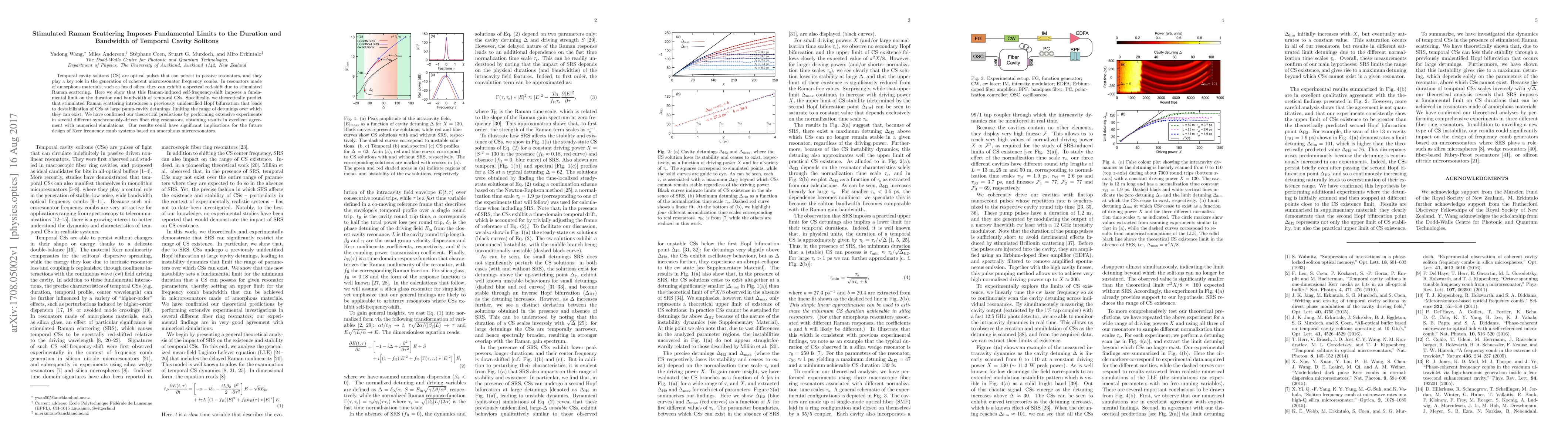 This paper demonstrates that stimulated Raman scattering in amorphous materials imposes fundamental limits on the duration and bandwidth of temporal cavity solitons, revealing a Hopf bifurcation that destabilizes solitons at large pump-cavity detunings. Experimental results in fiber ring resonators corroborate theoretical predictions, impacting the design of Kerr frequency comb systems.