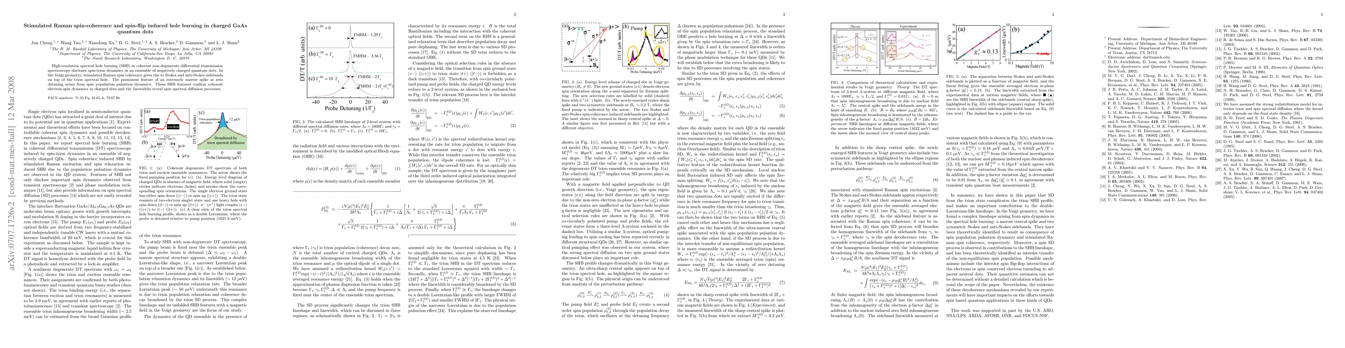 This paper investigates spin-trion dynamics in negatively charged GaAs quantum dots using high-resolution spectral hole burning, revealing stimulated Raman spin coherence and spin-flip induced hole burning. The study identifies narrow spike features due to spin population pulsation dynamics, confirming coherent electron spin dynamics and spin spectral diffusion processes.