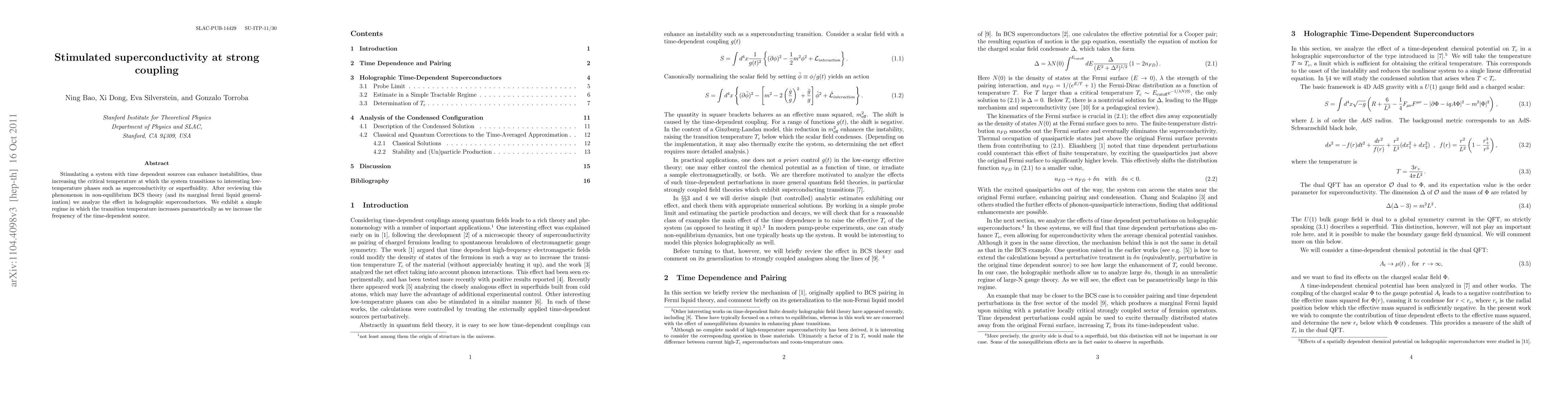 Stimulating a system with time dependent sources can enhance instabilities, thus increasing the critical temperature at which the system transitions to interesting low-temperature phases such as superconductivity or superfluidity. After reviewing this phenomenon in non-equilibrium BCS theory (and its marginal fermi liquid generalization) we analyze the effect in holographic superconductors. We exhibit a simple regime in which the transition temperature increases parametrically as we increase the frequency of the time-dependent source.