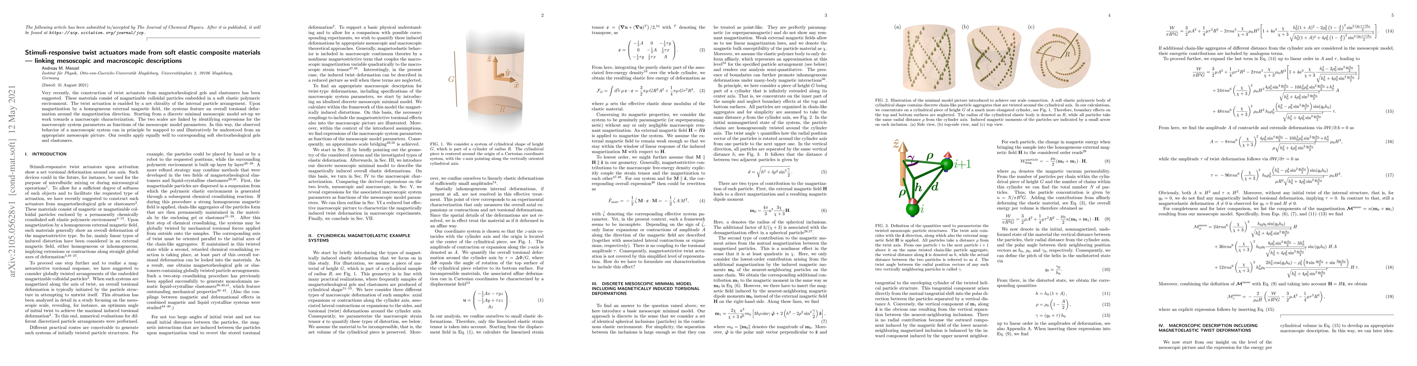 Very recently, the construction of twist actuators from magnetorheological gels and elastomers has been suggested. These materials consist of magnetizable colloidal particles embedded in a soft elastic polymeric environment. The twist actuation is enabled by a net chirality of the internal particle arrangement. Upon magnetization by a homogeneous external magnetic field, the systems feature an overall torsional deformation around the magnetization direction. Starting from a discrete minimal mesoscopic model set-up we work towards a macroscopic characterization. The two scales are linked by identifying expressions for the macroscopic system parameters as functions of the mesoscopic model parameters. In this way, the observed behavior of a macroscopic system can in principle be mapped to and illustratively be understood from an appropriate mesoscopic picture. Our results apply equally well to corresponding soft electrorheological gels and elastomers.