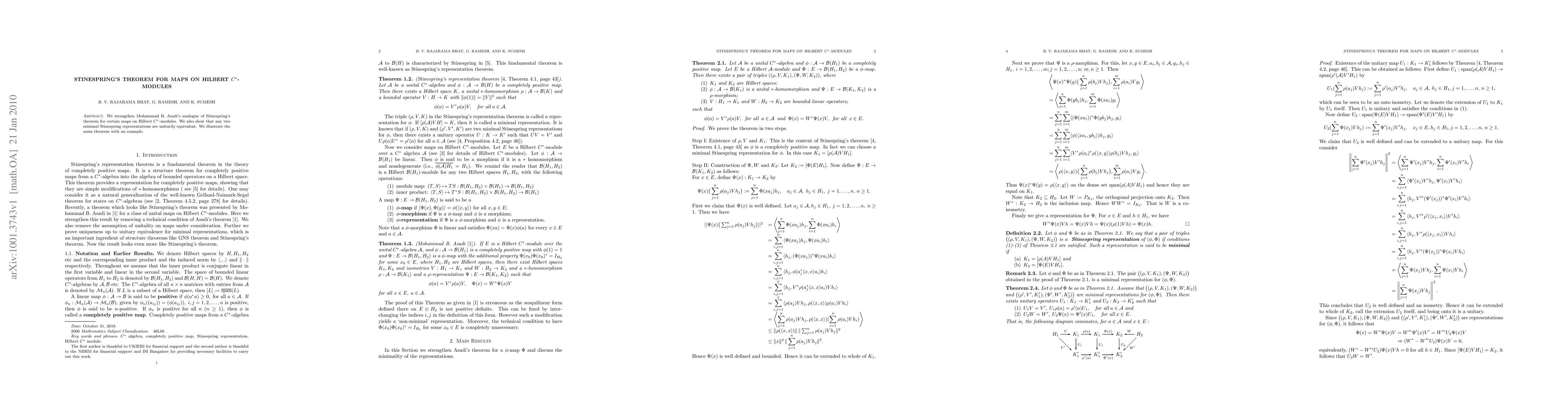 This paper strengthens Asadi's analogue of Stinespring's theorem for maps on Hilbert C*-modules and proves the unitarily equivalence of any two minimal Stinespring representations, with an illustrative example provided.