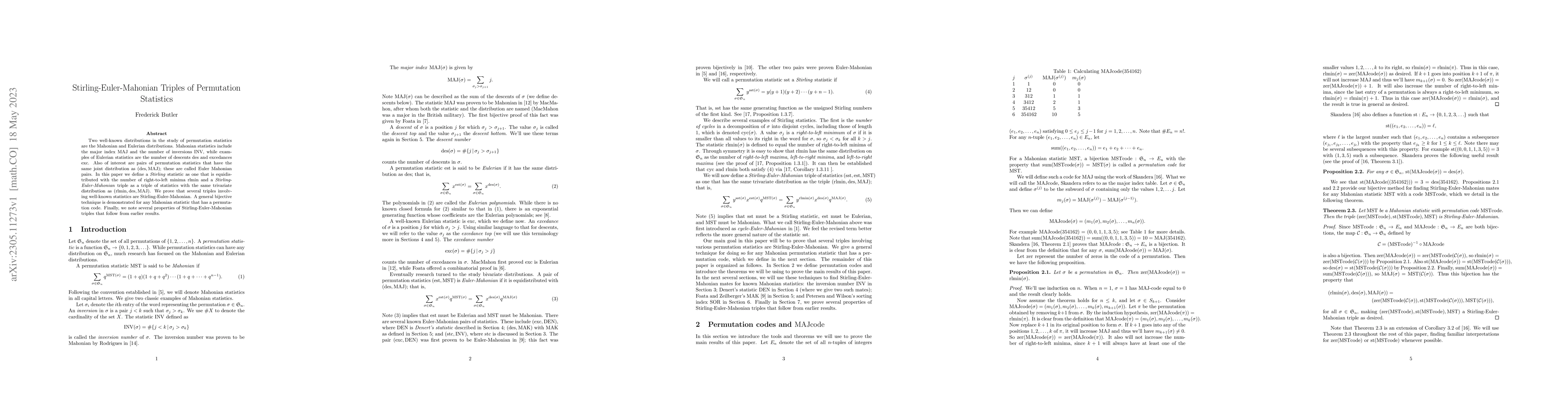 This paper defines Stirling-Euler-Mahonian triples of permutation statistics, demonstrating that certain triples involving well-known statistics like descents, major indices, and right-to-left minima share the same trivariate distribution. It also introduces a bijective technique for any Mahonian statistic with a permutation code.