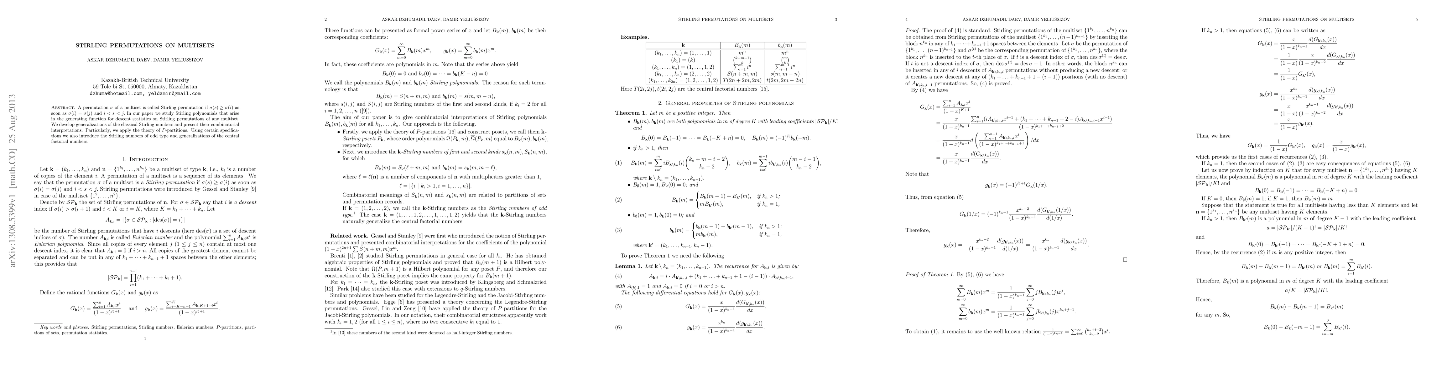 A permutation $\sigma$ of a multiset is called Stirling permutation if