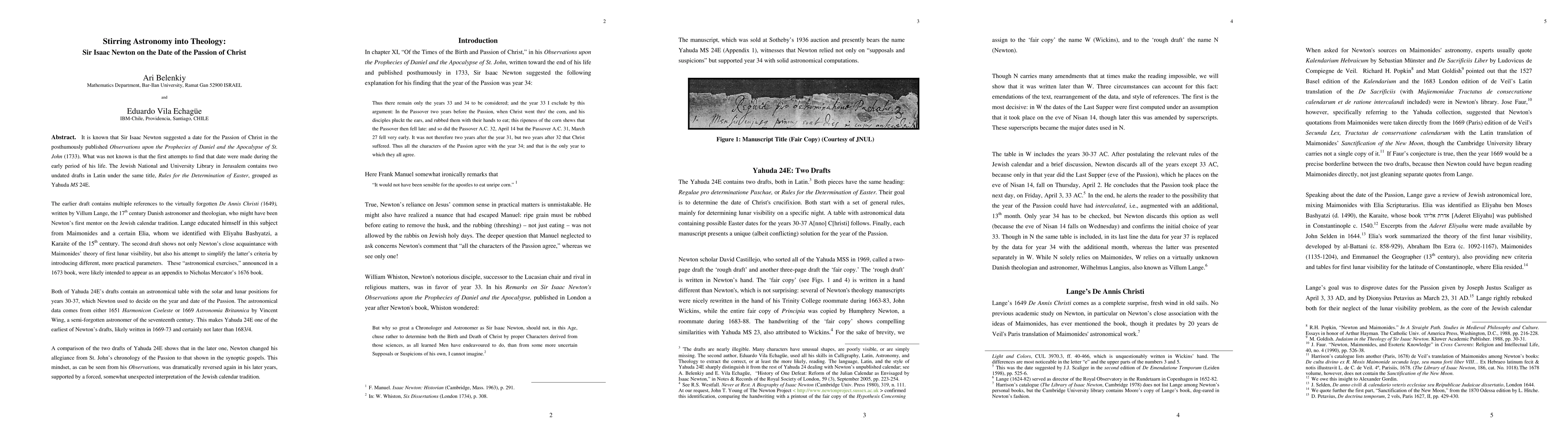 Researchers found two undated drafts from Sir Isaac Newton's early life that show he was exploring dating of the Passion of Christ as early as 1669-73, using astronomical calculations to make his predictions.
