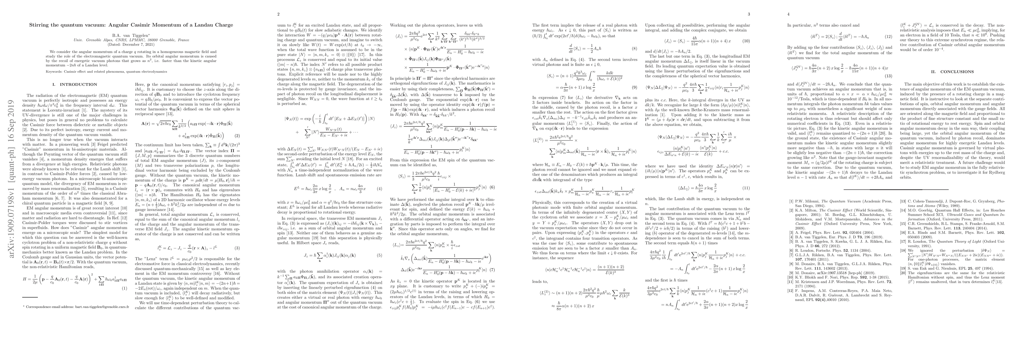 This paper investigates the angular momentum of a rotating charge in a magnetic field, revealing that the orbital angular momentum arises from the recoil of energetic vacuum photons, growing as n^2, which exceeds the kinetic angular momentum of Landau levels.