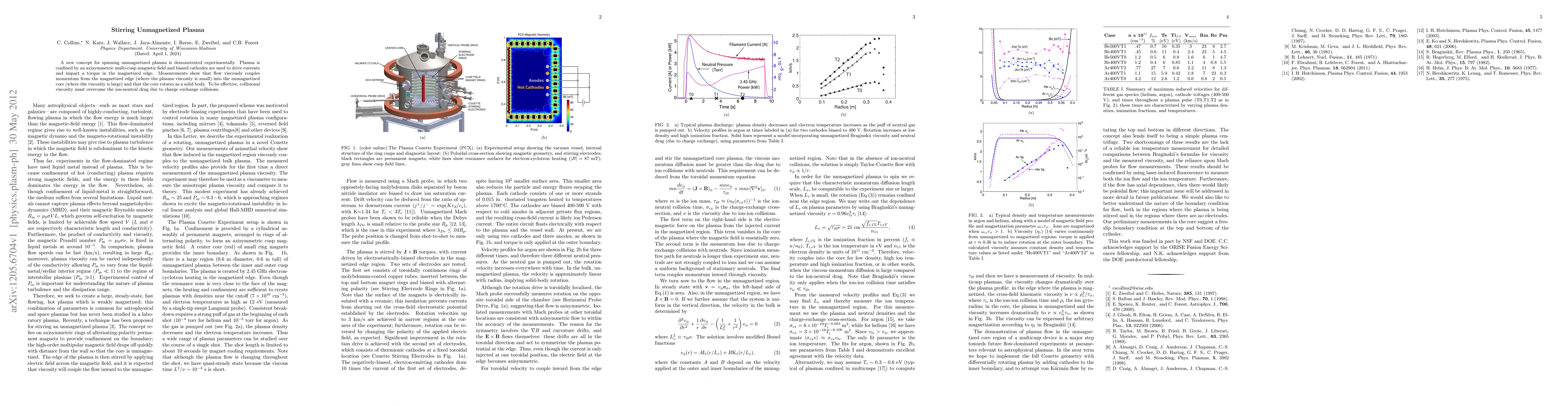 A new concept for spinning unmagnetized plasma is demonstrated experimentally. Plasma is confined by an axisymmetric multi-cusp magnetic field and biased cathodes are used to drive currents and impart a torque in the magnetized edge. Measurements show that flow viscously couples momentum from the magnetized edge (where the plasma viscosity is small) into the unmagnetized core (where the viscosity is large) and that the core rotates as a solid body. To be effective, collisional viscosity must overcome the ion-neutral drag due to charge exchange collisions.