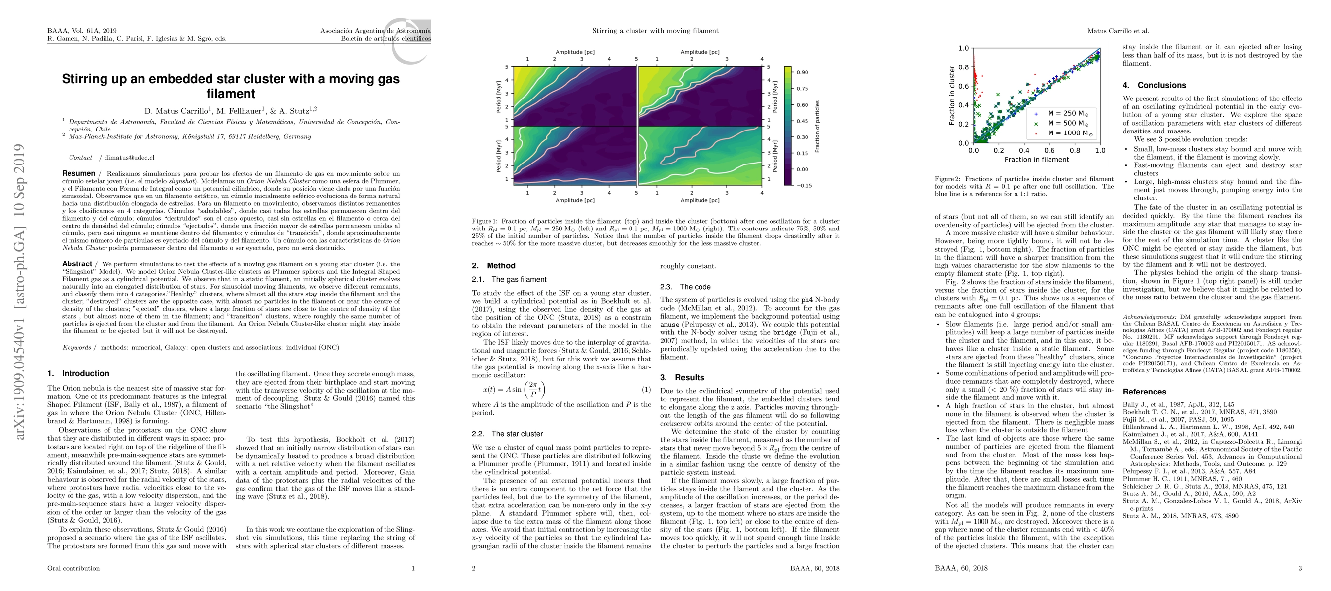 Researchers simulate a moving gas filament's effect on a young star cluster, finding four categories of cluster remnants: healthy (all stars inside), destroyed (almost no stars in filament), ejected (stars near centre but not in filament), and transition (equal ejection from cluster and filament).