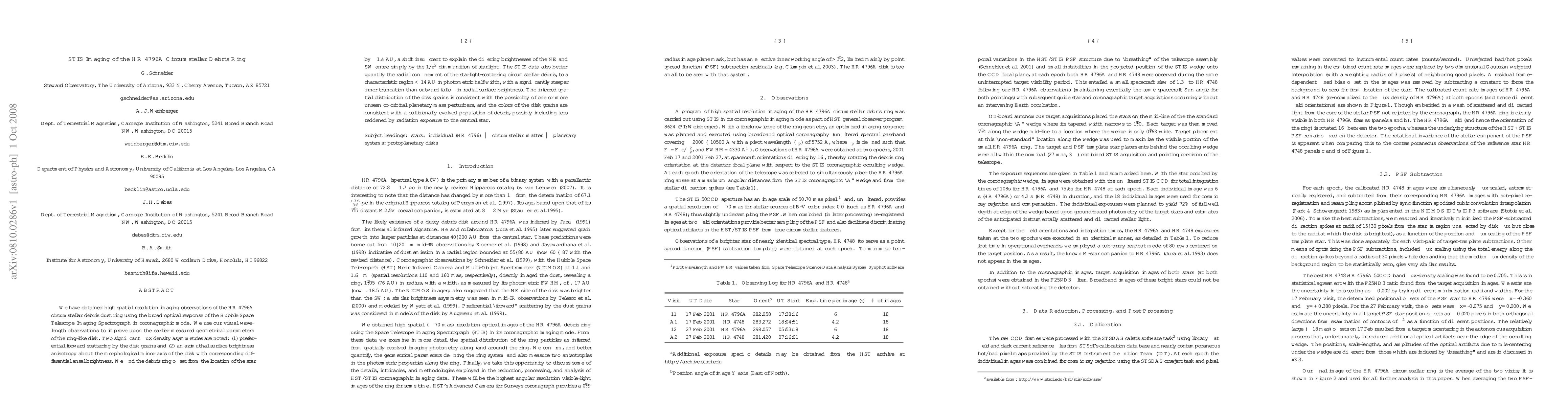 The study uses Hubble Space Telescope imaging to observe a debris dust ring around HR 4796A, finding asymmetries in brightness and grain distribution that suggest unseen co-orbital planetary-mass perturbers.