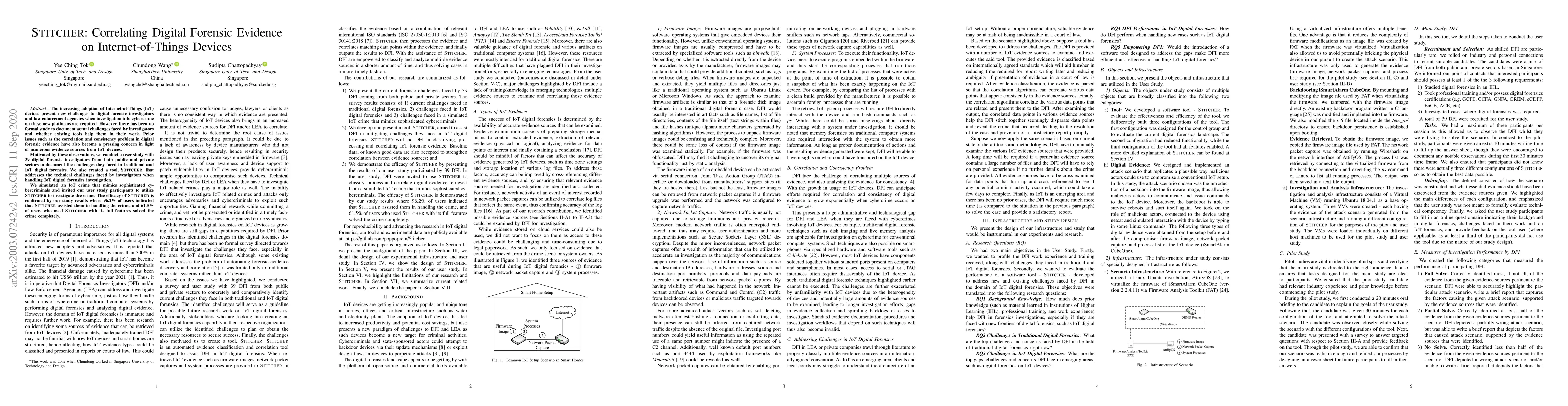 The paper investigates the challenges faced by digital forensic investigators in handling cybercrime on IoT devices, revealing significant issues with evidence correlation and consistency. STITCHER, a new tool developed to address these challenges, was tested in a simulated IoT crime scenario, with 96.2% of participants reporting its assistance and 61.5% solving the crime using its full features.