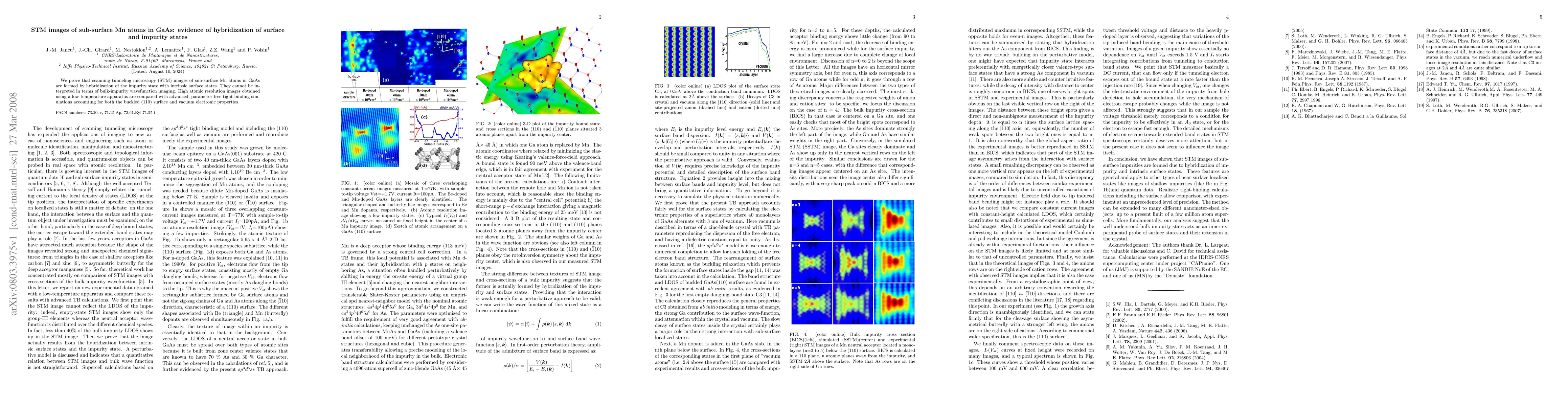 We prove that scanning tunneling microscopy (STM) images of sub-surface Mn atoms in GaAs are formed by hybridization of the impurity state with intrinsic surface states. They cannot be interpreted in terms of bulk-impurity wavefunction imaging. High atomic resolution images obtained using a low-temperature apparatus are compared with advanced, parameter-free tight-binding simulations accounting for both the buckled (110) surface and vacuum electronic properties.