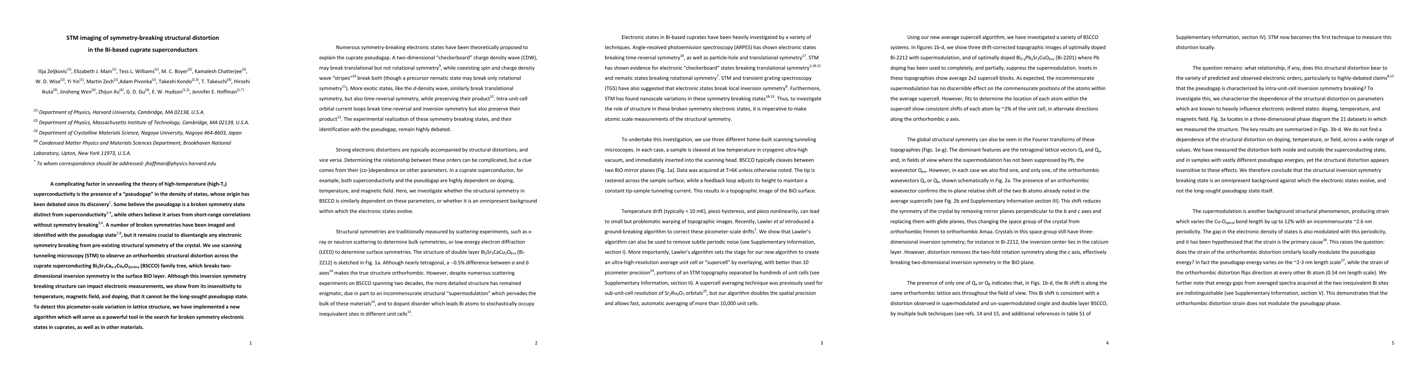 This paper uses scanning tunneling microscopy (STM) to identify an orthorhombic structural distortion in Bi-based cuprate superconductors that breaks two-dimensional inversion symmetry, but it is shown to be unrelated to the pseudogap state due to its temperature, magnetic field, and doping insensitivity.