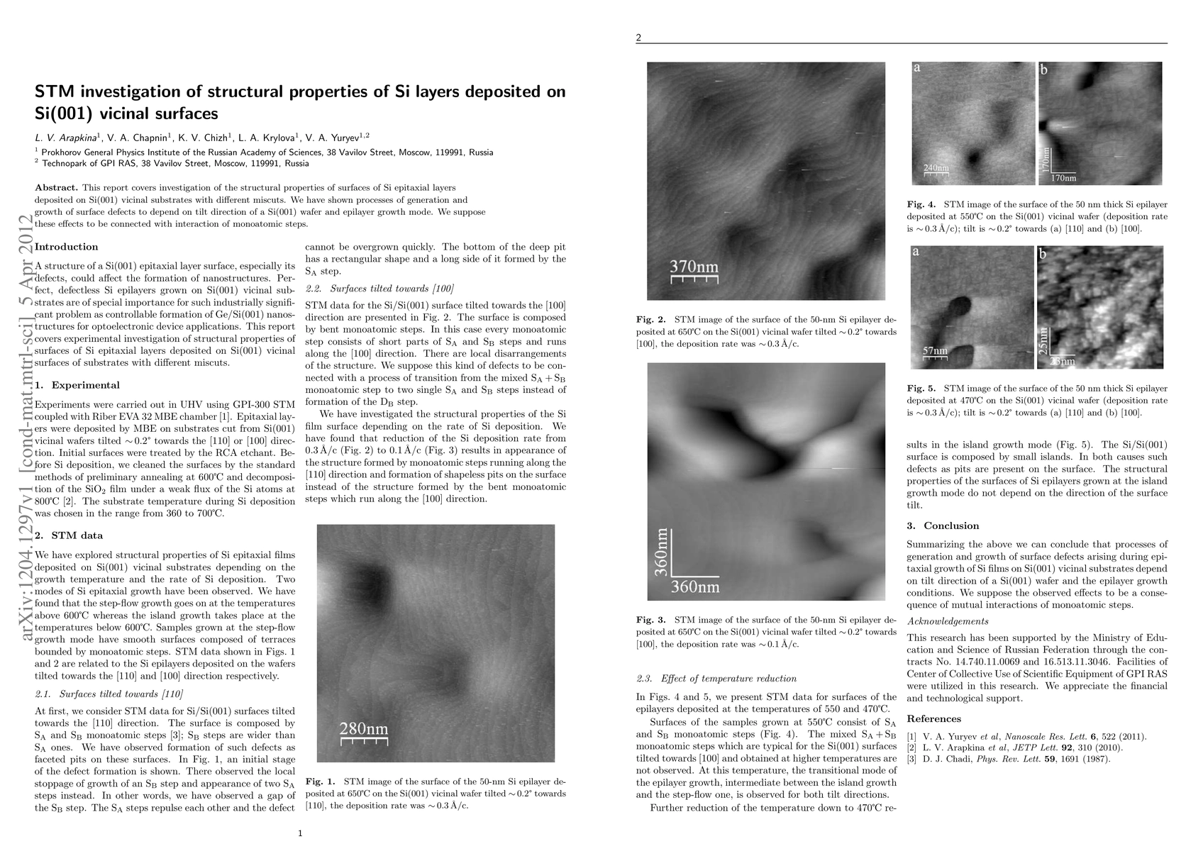Summary: The study investigates structural properties of Si epitaxial layers on Si(001) vicinal surfaces using STM, revealing that surface defect generation and growth vary with tilt direction and growth mode, likely due to interactions between monoatomic steps.