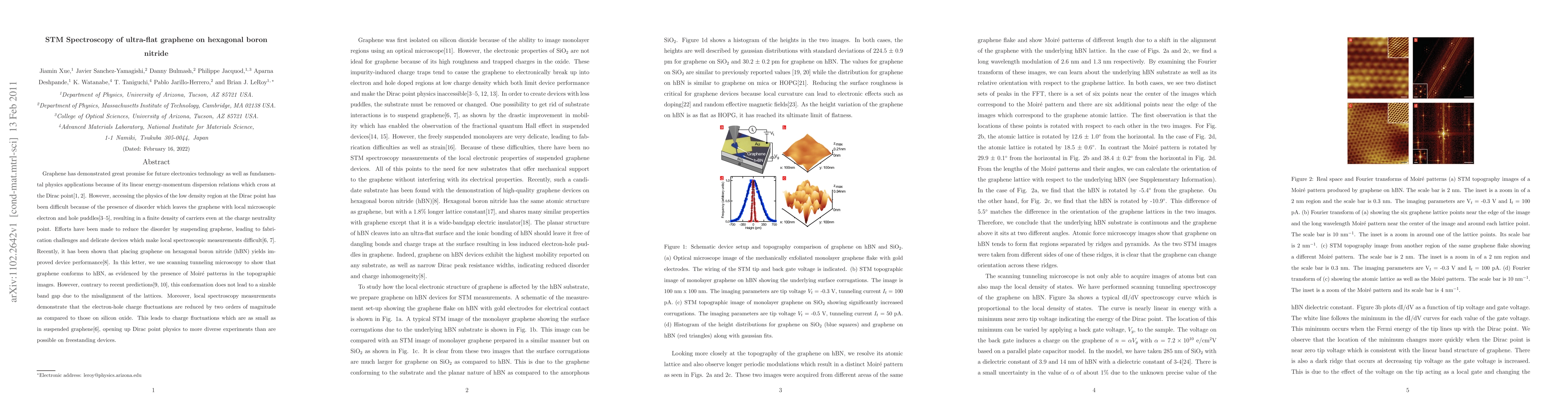Graphene has demonstrated great promise for future electronics technology as well as fundamental physics applications because of its linear energy-momentum dispersion relations which cross at the Dirac point. However, accessing the physics of the low density region at the Dirac point has been difficult because of the presence of disorder which leaves the graphene with local microscopic electron and hole puddles, resulting in a finite density of carriers even at the charge neutrality point. Efforts have been made to reduce the disorder by suspending graphene, leading to fabrication challenges and delicate devices which make local spectroscopic measurements difficult. Recently, it has been shown that placing graphene on hexagonal boron nitride (hBN) yields improved device performance. In this letter, we use scanning tunneling microscopy to show that graphene conforms to hBN, as evidenced by the presence of Moire patterns in the topographic images. However, contrary to recent predictions, this conformation does not lead to a sizable band gap due to the misalignment of the lattices. Moreover, local spectroscopy measurements demonstrate that the electron-hole charge fluctuations are reduced by two orders of magnitude as compared to those on silicon oxide. This leads to charge fluctuations which are as small as in suspended graphene, opening up Dirac point physics to more diverse experiments than are possible on freestanding devices.