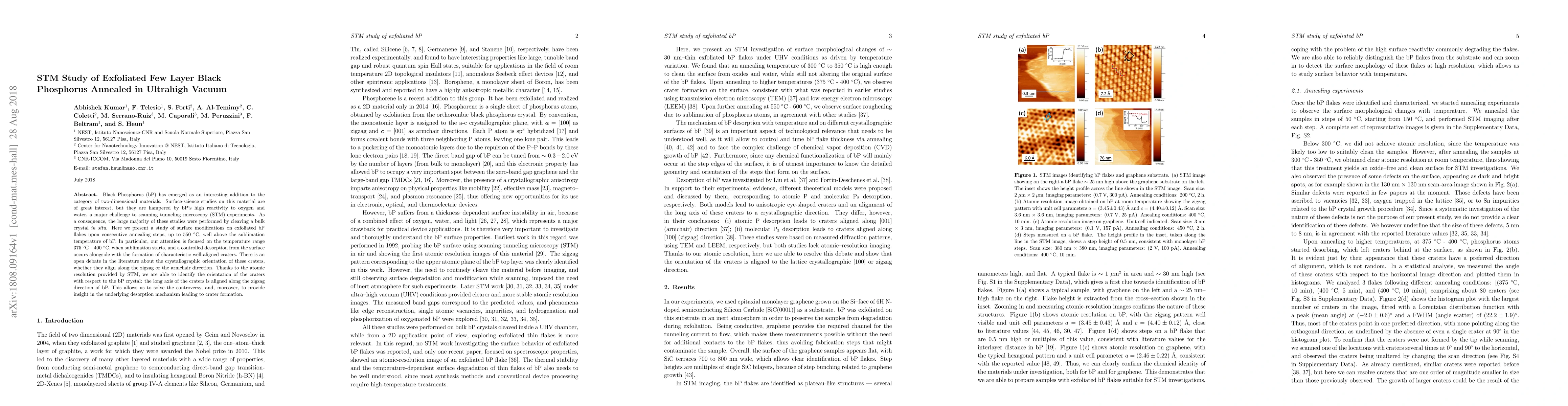 Black Phosphorus (bP) has emerged as an interesting addition to the category of two-dimensional materials. Surface-science studies on this material are of great interest, but they are hampered by bP's high reactivity to oxygen and water, a major challenge to scanning tunneling microscopy (STM) experiments. As a consequence, the large majority of these studies were performed by cleaving a bulk crystal in situ. Here we present a study of surface modifications on exfoliated bP flakes upon consecutive annealing steps, up to 550 C, well above the sublimation temperature of bP. In particular, our attention is focused on the temperature range 375 C - 400 C, when sublimation starts, and a controlled desorption from the surface occurs alongside with the formation of characteristic well-aligned craters. There is an open debate in the literature about the crystallographic orientation of these craters, whether they align along the zigzag or the armchair direction. Thanks to the atomic resolution provided by STM, we are able to identify the orientation of the craters with respect to the bP crystal: the long axis of the craters is aligned along the zigzag direction of bP. This allows us to solve the controversy, and, moreover, to provide insight in the underlying desorption mechanism leading to crater formation.