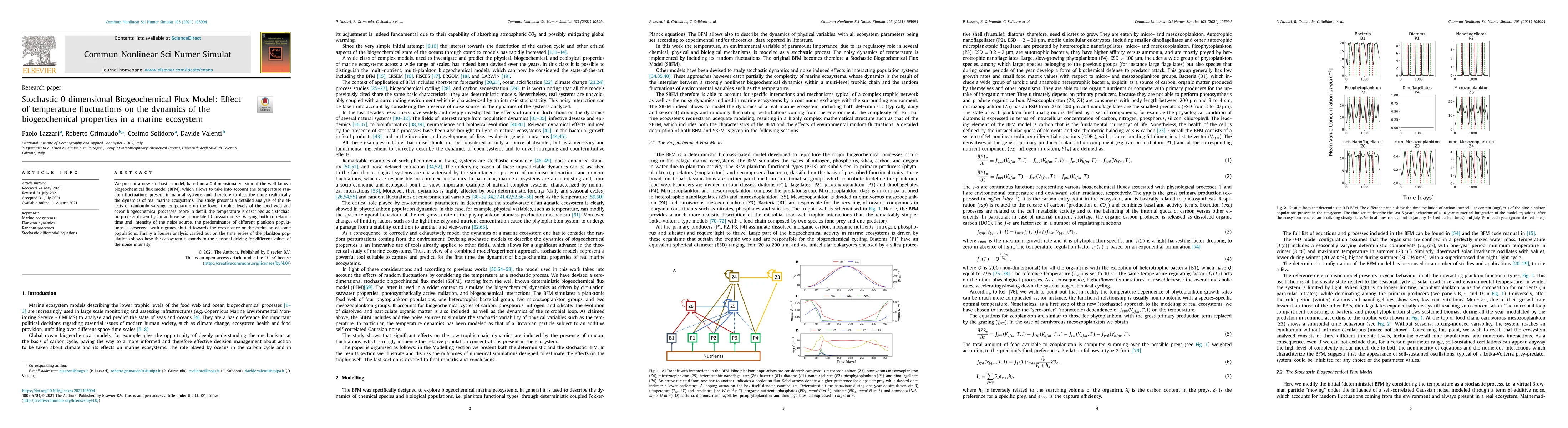 This paper introduces a stochastic 0-dimensional model to analyze the impact of temperature fluctuations on marine ecosystem dynamics, revealing how varying temperature noise influences plankton populations and biogeochemical processes, with Fourier analysis showing seasonal ecosystem responses.