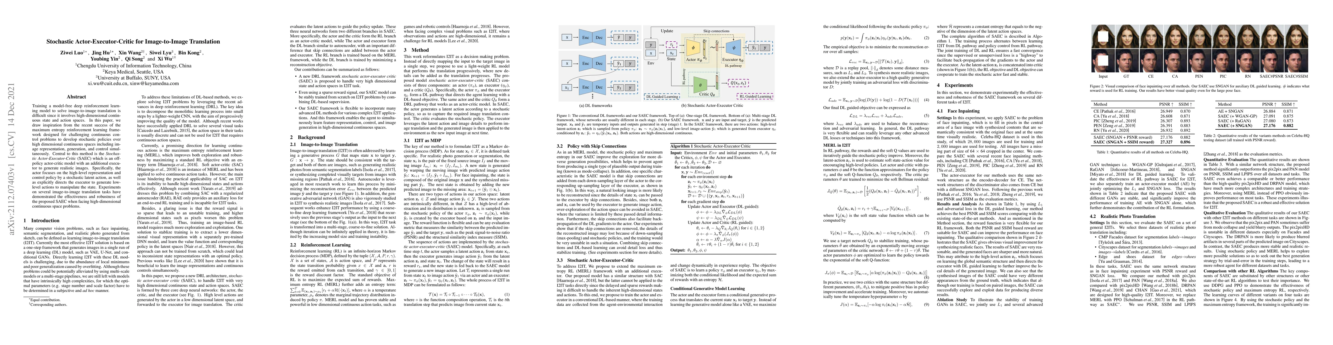This paper proposes a Stochastic Actor-Executor-Critic (SAEC) model for image-to-image translation, leveraging maximum entropy reinforcement learning to handle high-dimensional continuous spaces. The SAEC model effectively generates realistic images through a combination of high-level representation and low-level manipulation, demonstrating effectiveness in various translation tasks.