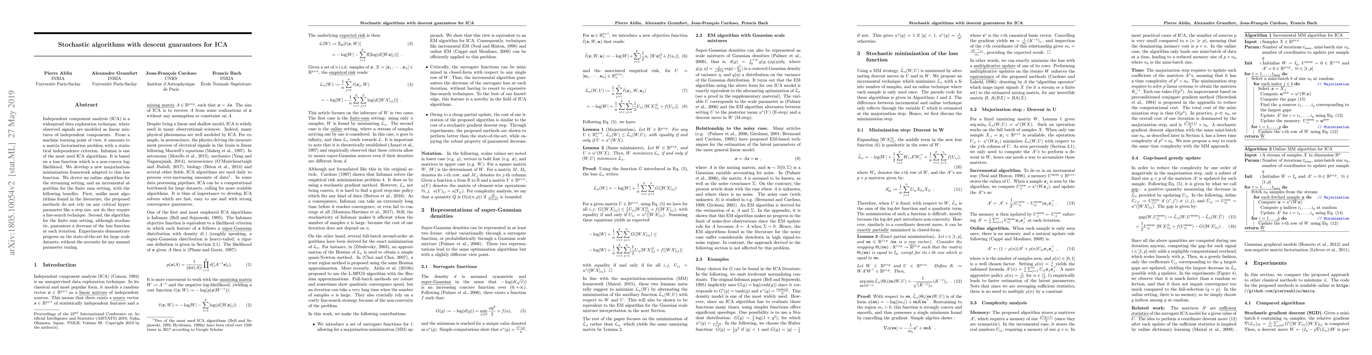 Independent component analysis (ICA) is a widespread data exploration technique, where observed signals are modeled as linear mixtures of independent components. From a machine learning point of view, it amounts to a matrix factorization problem with a statistical independence criterion. Infomax is one of the most used ICA algorithms. It is based on a loss function which is a non-convex log-likelihood. We develop a new majorization-minimization framework adapted to this loss function. We derive an online algorithm for the streaming setting, and an incremental algorithm for the finite sum setting, with the following benefits. First, unlike most algorithms found in the literature, the proposed methods do not rely on any critical hyper-parameter like a step size, nor do they require a line-search technique. Second, the algorithm for the finite sum setting, although stochastic, guarantees a decrease of the loss function at each iteration. Experiments demonstrate progress on the state-of-the-art for large scale datasets, without the necessity for any manual parameter tuning.