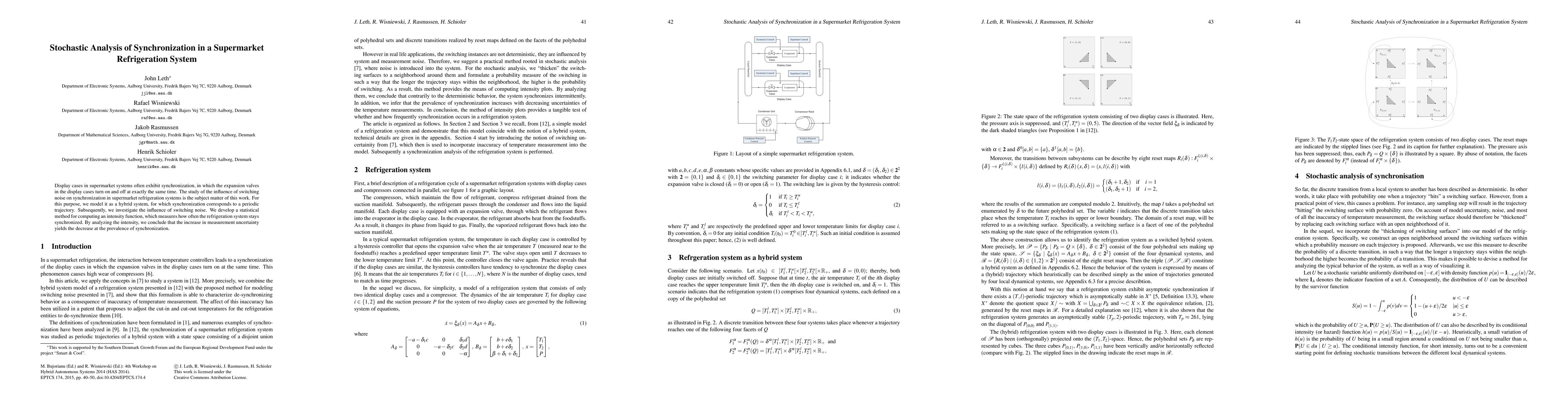 The paper presents a novel stochastic analysis method for hybrid systems, specifically for supermarket refrigeration systems, to understand the influence of switching noise on synchronization.