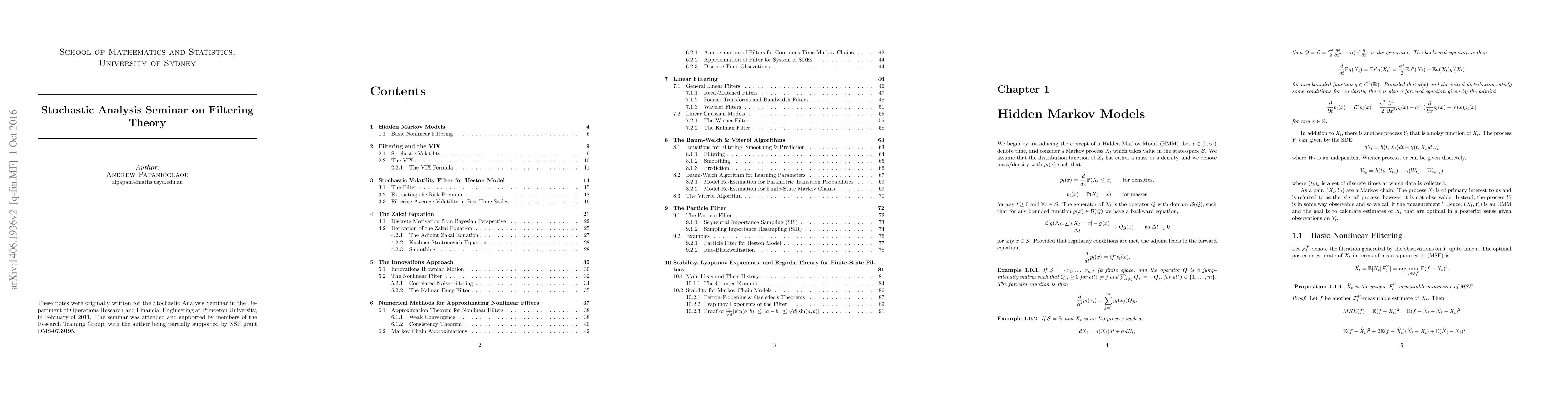Summary: These seminar notes from Princeton University's Stochastic Analysis Seminar in February 2011 focus on filtering theory, supported by the Research Training Group and funded by an NSF grant. They provide insights into advanced stochastic analysis techniques.