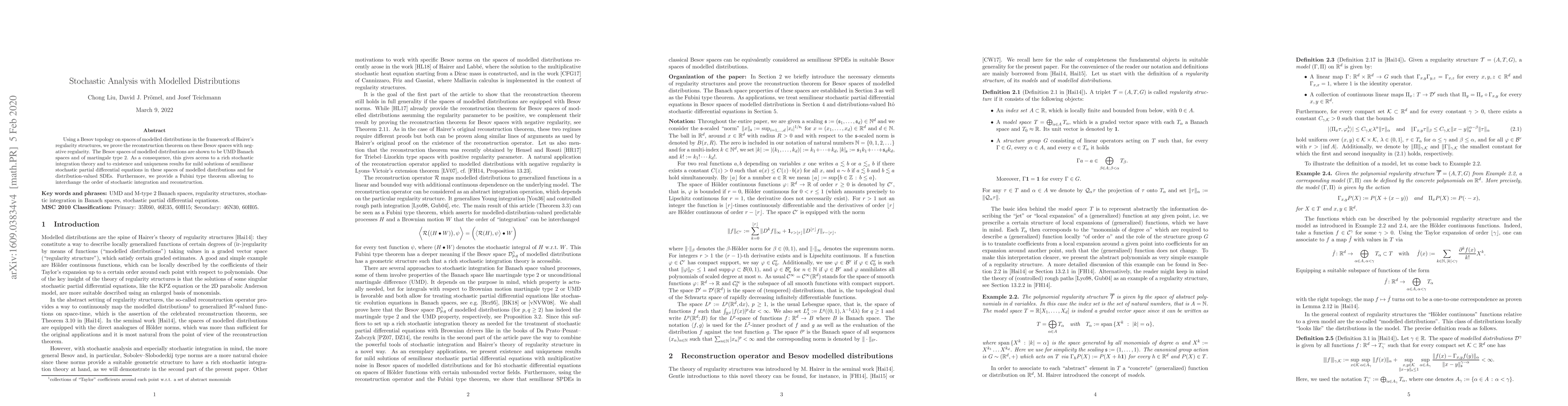 This paper establishes a reconstruction theorem for modelled distributions in Besov spaces, proving these spaces are UMD Banach spaces of martingale type 2, thereby enabling stochastic integration theory and existence/uniqueness results for semilinear stochastic PDEs and distribution-valued SDEs. It also introduces a Fubini theorem for stochastic integration.