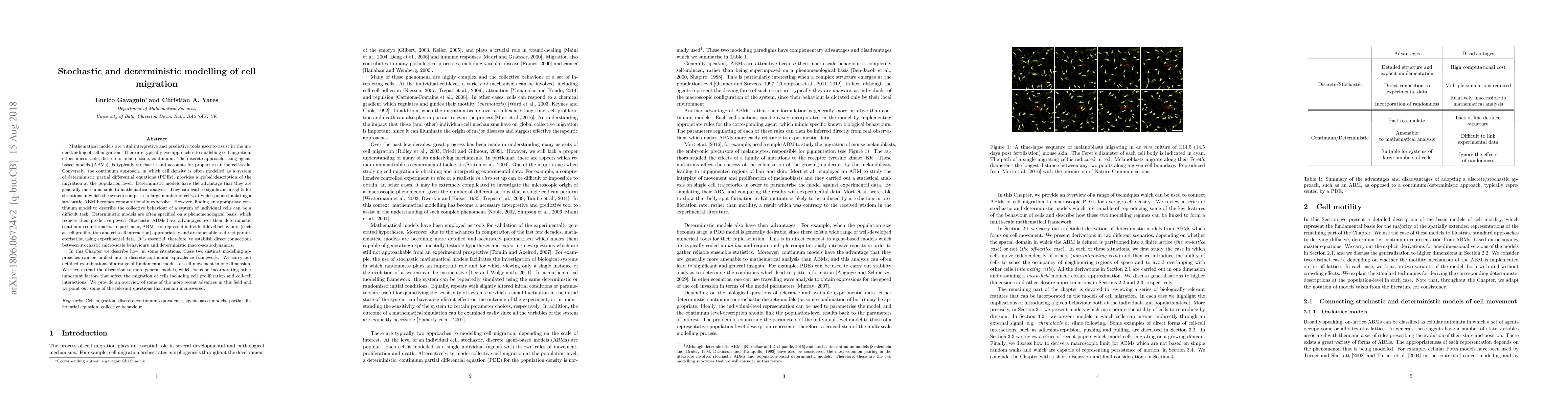 This paper discusses the integration of stochastic agent-based models (ABMs) and deterministic continuum models to understand cell migration. It highlights the strengths of both approaches, emphasizing the need for a discrete-continuum equivalence framework to bridge micro-scale individual cell behaviors with macro-scale population dynamics.