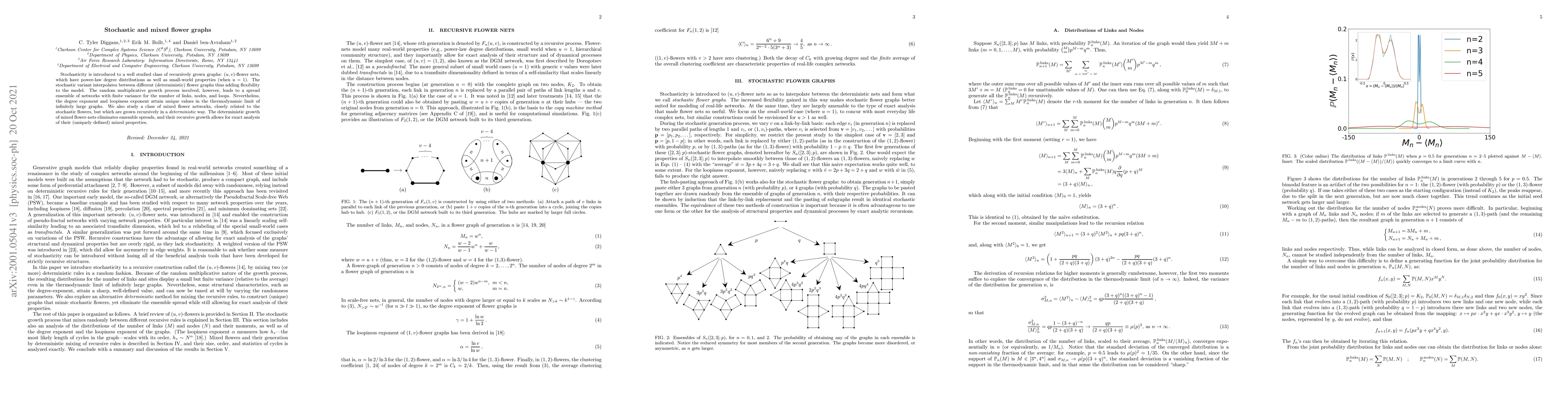 Stochasticity is introduced to a well studied class of recursively grown graphs: $(u,v)$-flower nets, which have power-law degree distributions as well as small-world properties (when $u=1$). The stochastic variant interpolates between different (deterministic) flower graphs and might better model real-world networks. The random multiplicative growth process involved, however, leads to a spread ensemble of networks with finite variance for the number of links, nodes, and loops. Nevertheless, the degree exponent and loopiness exponent attain unique values in the thermodynamic limit of infinitely large graphs. We also study a class of mixed flower networks, closely related to the stochastic flowers, but which are grown recursively in a deterministic way. The deterministic growth of mixed flower-nets eliminates ensemble spreads, and their recursive growth allows for exact analysis of their (uniquely defined) mixed properties.