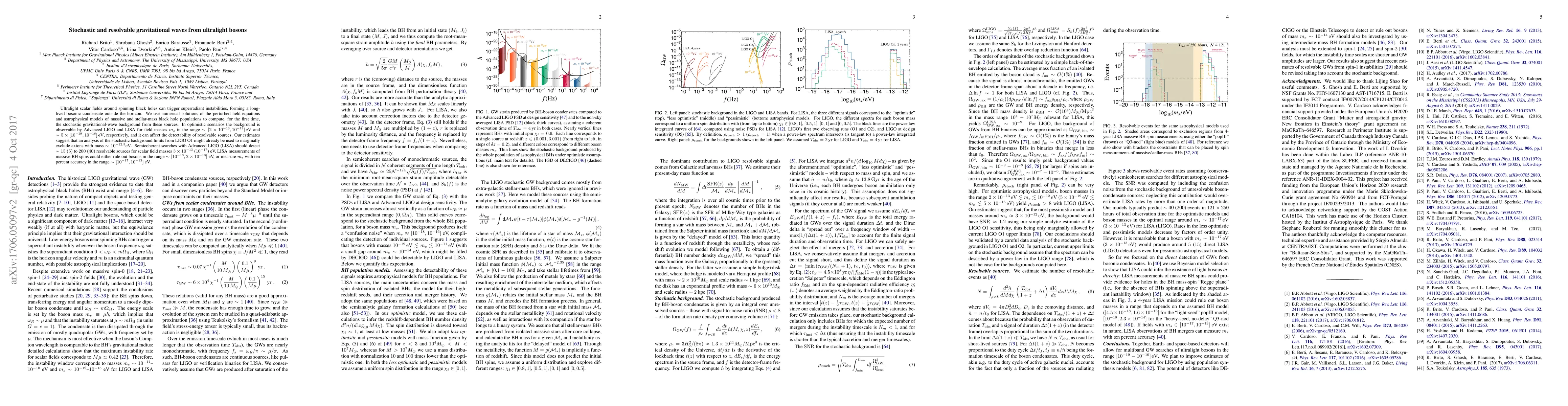 This paper investigates the stochastic gravitational-wave background generated by ultralight bosons forming condensates around spinning black holes, predicting its observability by Advanced LIGO and LISA. It suggests that these waves could exclude axions with specific masses and detect numerous resolvable sources, while LISA may measure boson masses with high accuracy.