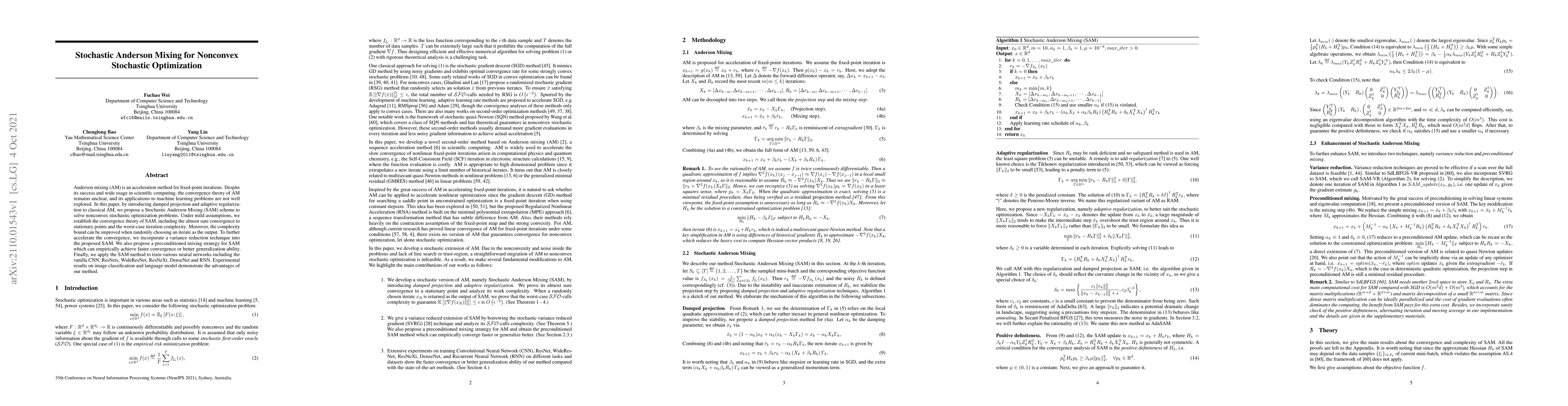 This paper introduces Stochastic Anderson Mixing (SAM), a new method for solving nonconvex stochastic optimization problems, achieving almost sure convergence to stationary points with improved iteration complexity. SAM is shown to outperform existing methods in image classification and language model tasks.
