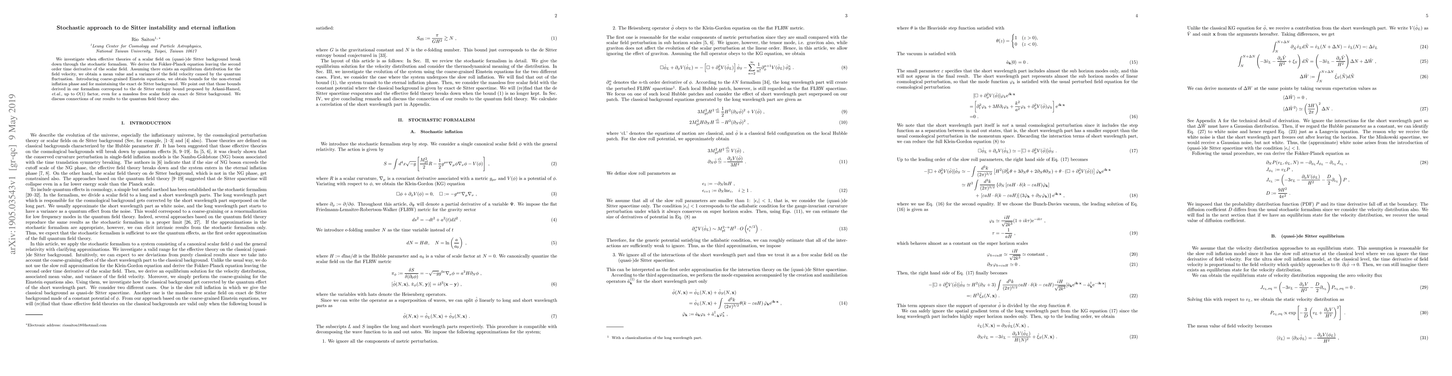 The paper employs a stochastic formalism to investigate when effective theories of a scalar field on (quasi-)de Sitter backgrounds break down, deriving a Fokker-Planck equation for the second-order time derivative of the scalar field and obtaining bounds for non-eternal inflation and maintaining exact de Sitter backgrounds.