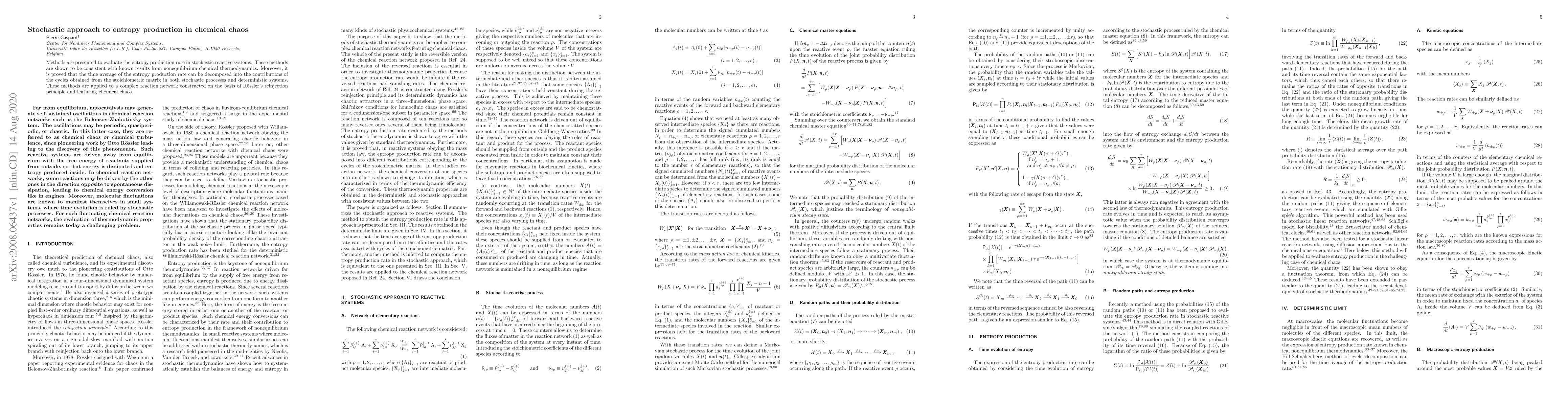This paper introduces stochastic methods for evaluating entropy production in reactive systems, demonstrating consistency with nonequilibrium thermodynamics. It proves the decomposition of time-averaged entropy production into contributions from cycles in both stochastic and deterministic systems, applying these methods to a chaotic reaction network based on Roessler's principle.