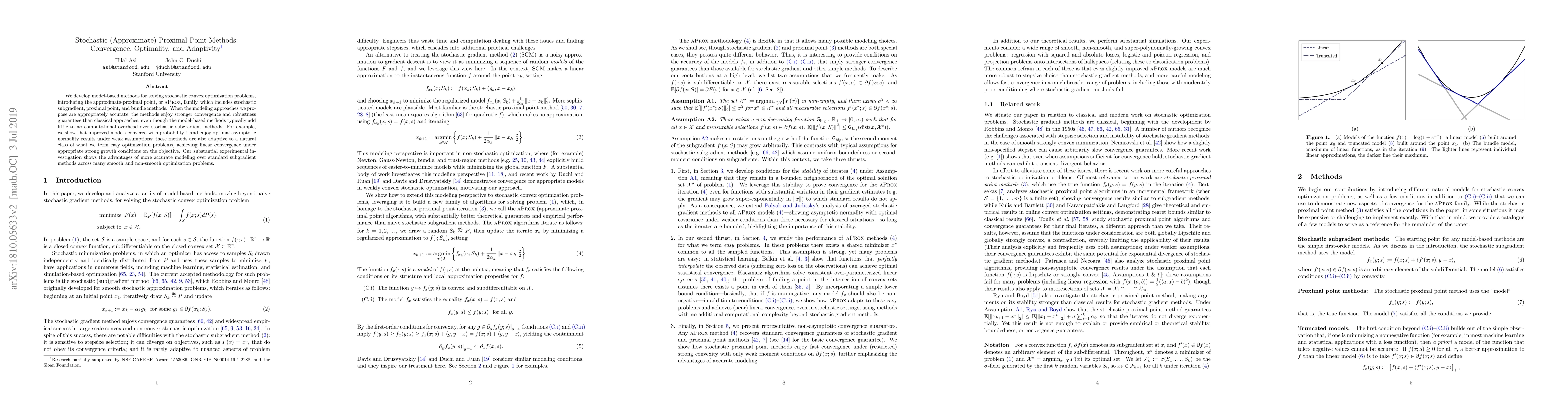 We develop model-based methods for solving stochastic convex optimization problems, introducing the approximate-proximal point, or aProx, family, which includes stochastic subgradient, proximal point, and bundle methods. When the modeling approaches we propose are appropriately accurate, the methods enjoy stronger convergence and robustness guarantees than classical approaches, even though the model-based methods typically add little to no computational overhead over stochastic subgradient methods. For example, we show that improved models converge with probability 1 and enjoy optimal asymptotic normality results under weak assumptions; these methods are also adaptive to a natural class of what we term easy optimization problems, achieving linear convergence under appropriate strong growth conditions on the objective. Our substantial experimental investigation shows the advantages of more accurate modeling over standard subgradient methods across many smooth and non-smooth optimization problems.
